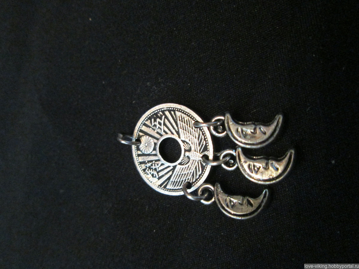 Сложный кулон из коннектора в виде стилизованной монеты с подвесками-лунами
