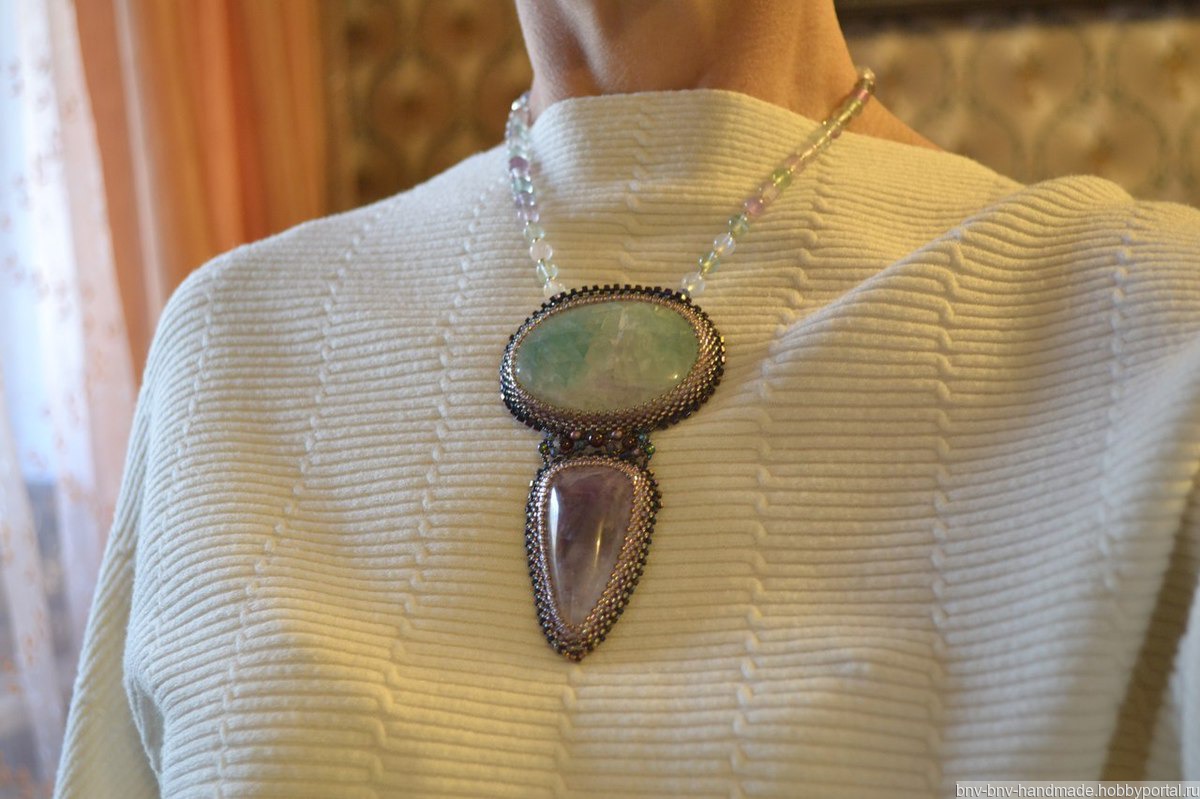 кулон ручной работы, длинный кулон, сваровски, красивый подарок, кулон с камнями, красивый подарок красивой женщине, гранат, красивый кулон, флюорит, флюорит кабошон