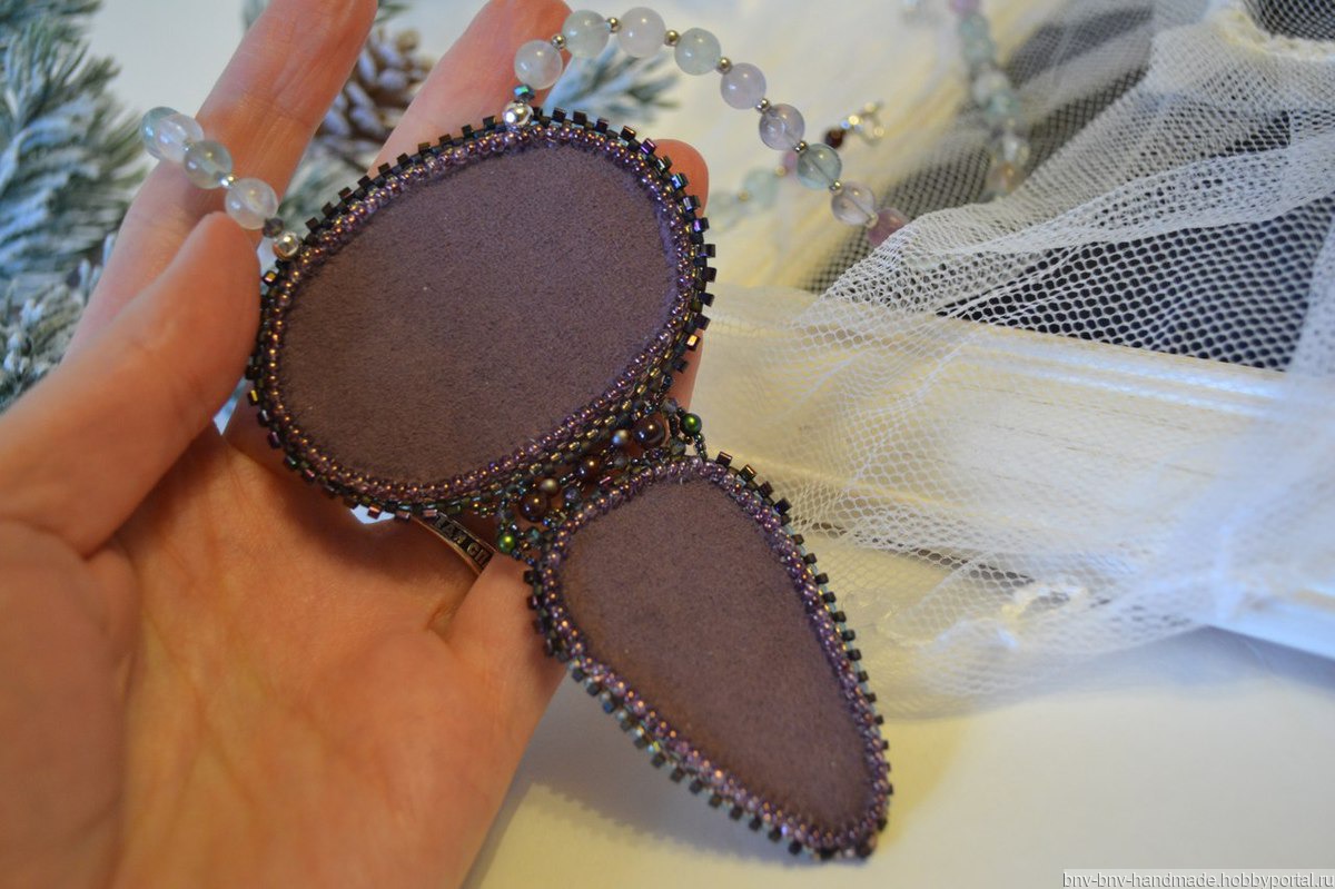Изнанка отделана замшей. Края обшиты японским бисером Тохо.