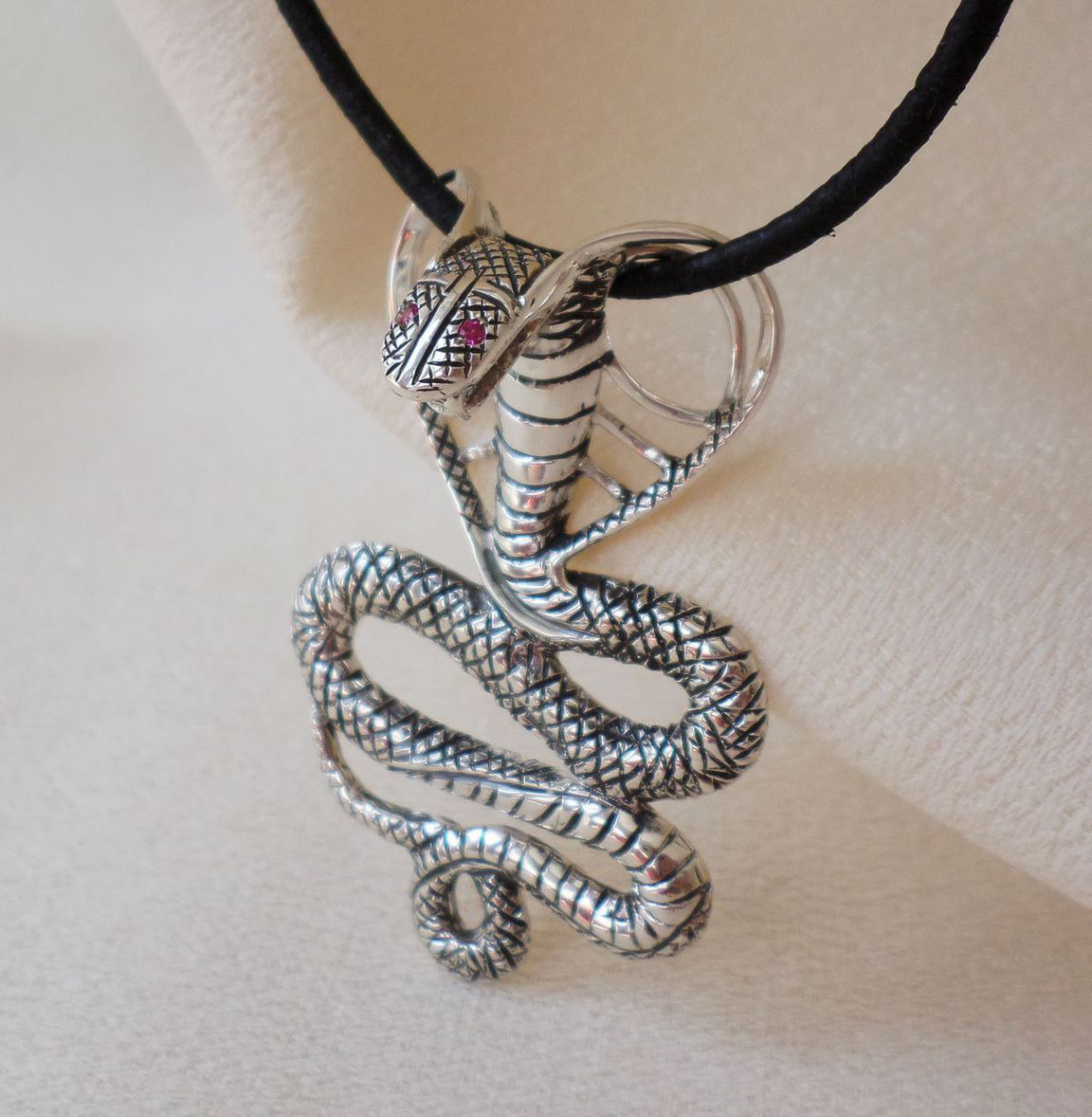 подвеска, ручная работа, черно-белый, купить подарок, змея, серебро 925 пробы, ювелирные украшения, серебряные украшения, кобра, символ мудрости