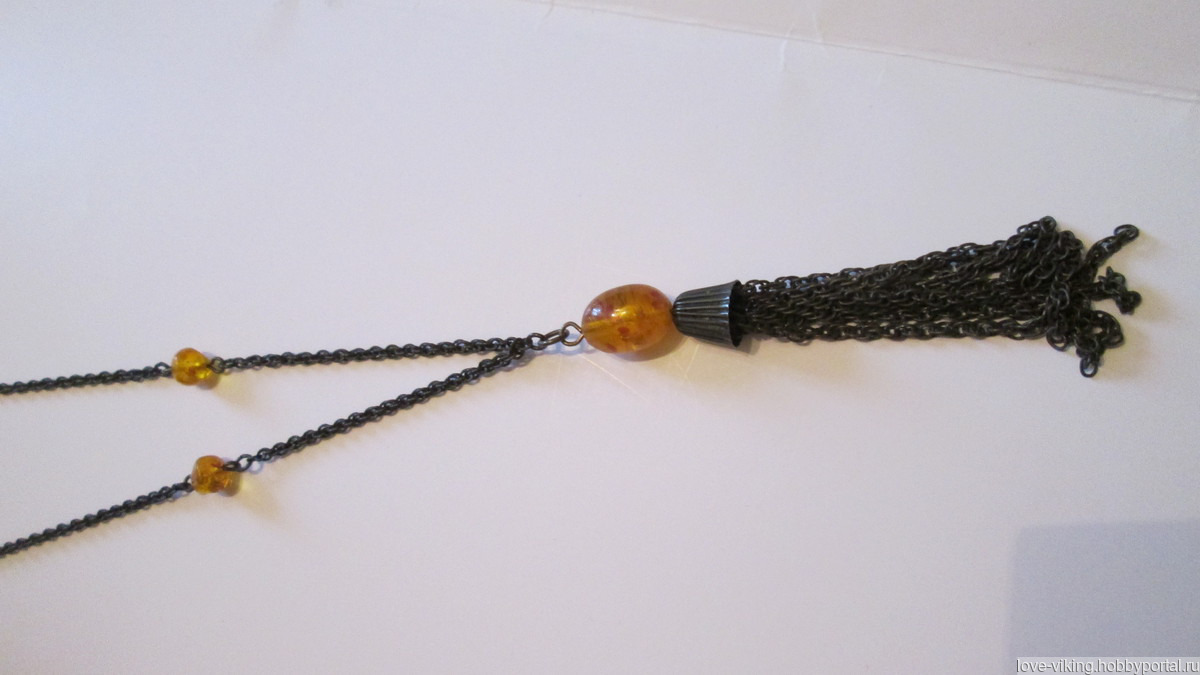 Подвеска из искусственного янтаря на цепочках с металлической чашечкой