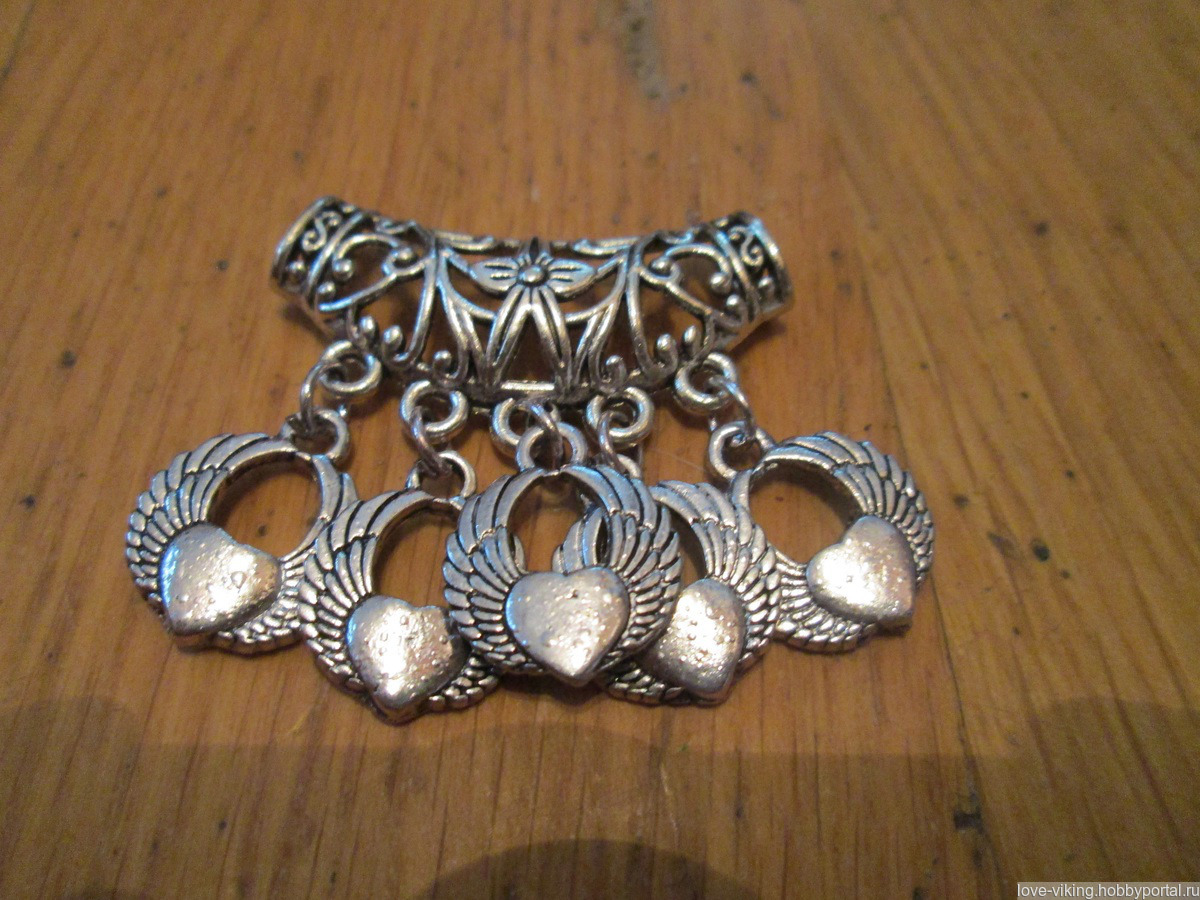 Кулон с длинным коннектором и подвесками в виде крылатых сердечек