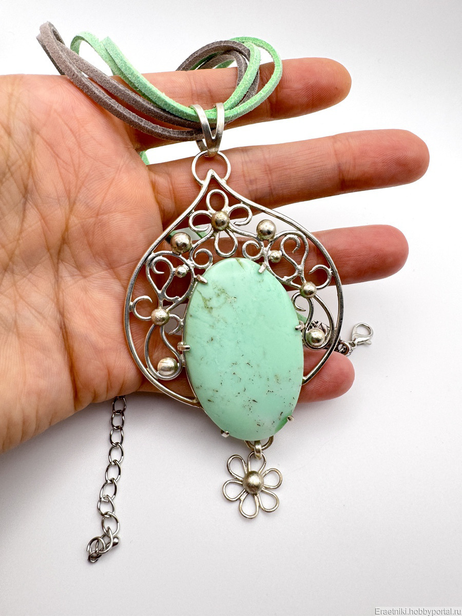 Кулон авторской работы с хризопалом . Материалы: хризопал, нейзильбер, латунь, посеребрение, замшевый (иск) шнур. Размеры: 5,7 см /11 см Длина шнурка: 34+6 см. Вес украшения:27 грамм.