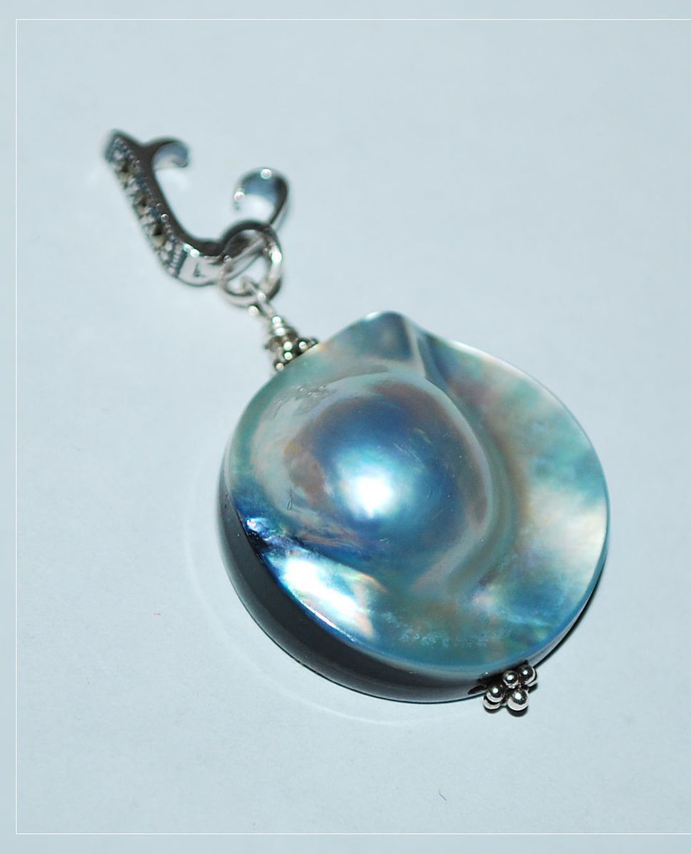 серый, подвеска, украшения ручной работы, кулон ручной работы, кулон натуральный камень, серебряные украшения, жемчуг натуральный, украшения с жемчугом, редкие камни, редкие украшения, редкий жемчуг, подвеска с жемчугом, жемчужный кулон, жемчужная подвеска, кулон с жемчугом, жемчуг мабе, мабе, радужный блеск, серебро с марказитами, мабе жемчуг
