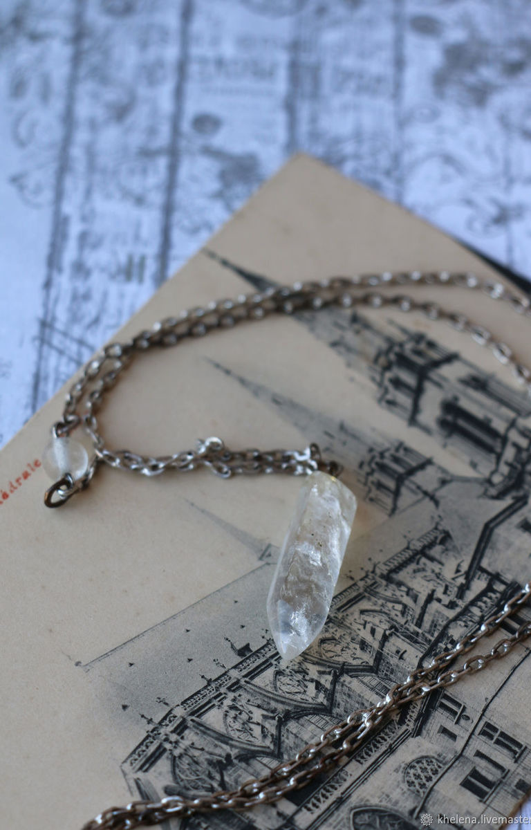 Ласточка – длина кулона 6 см., цепочка 64 см., дерево 2х3 см., цепочка 71 см., кварц 5 см., цепочка 68 см.