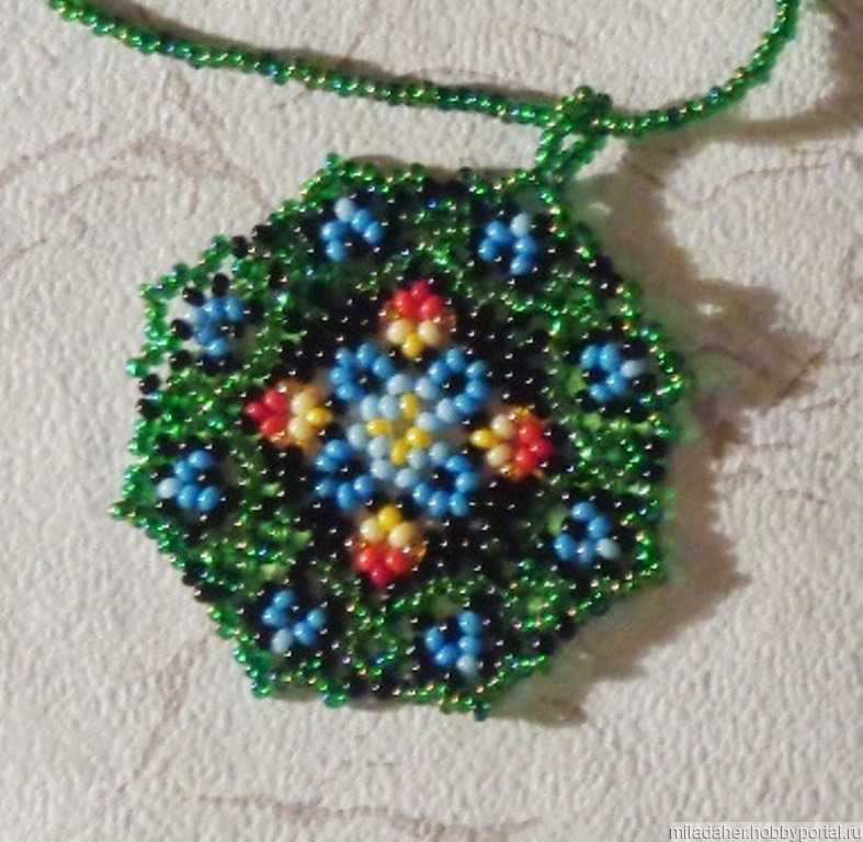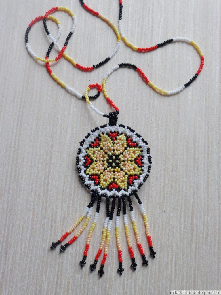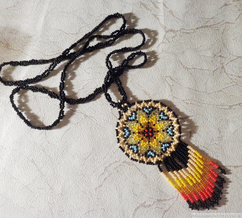 Уичольские украшения. Кулон сплетен из чешского бисера.