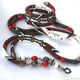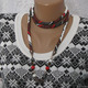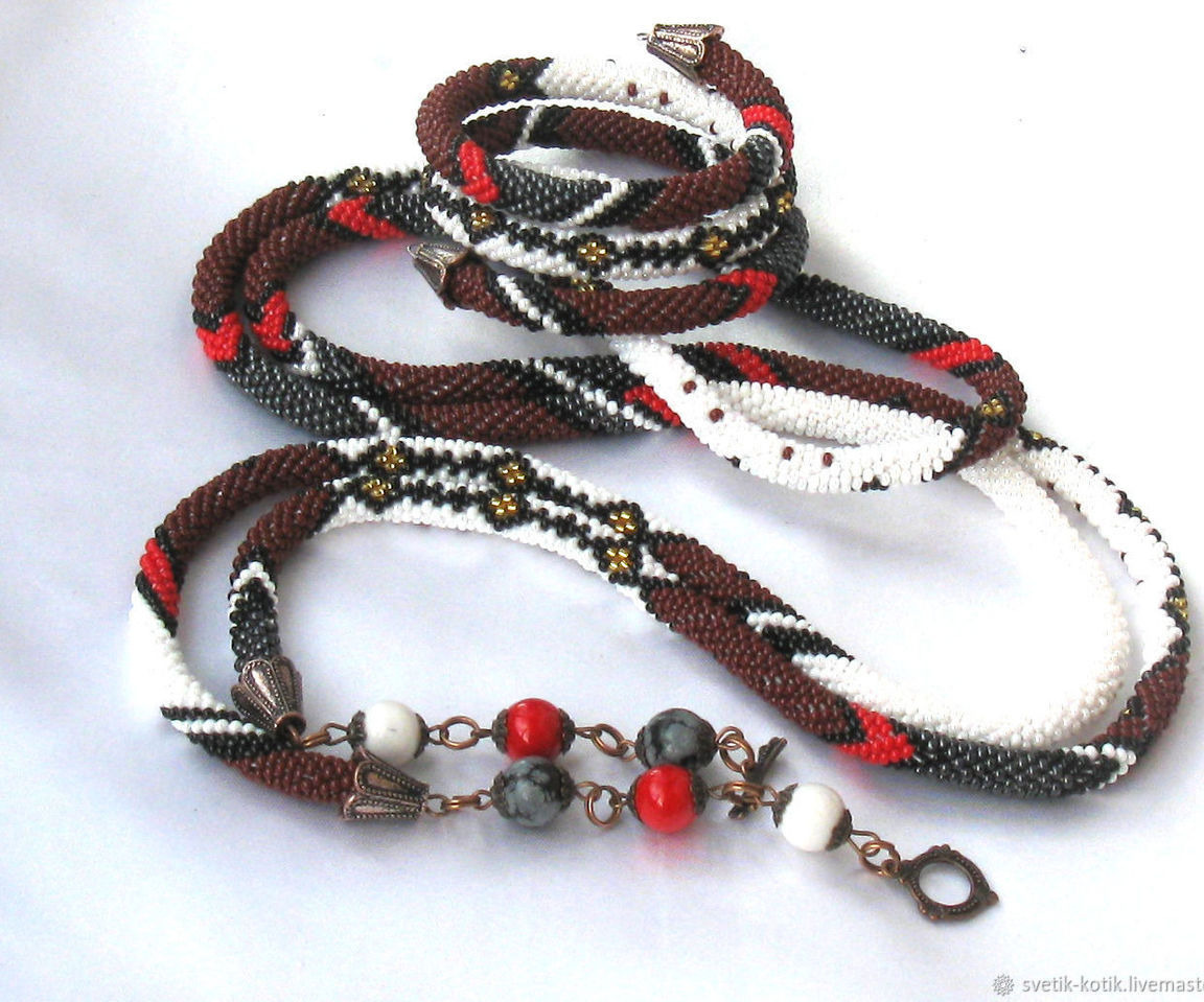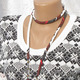 Лариат выполнен из чешского бисера бордового, красного, серого и белого цветов... Подвески из белого агата, обсидиана, и коралла.