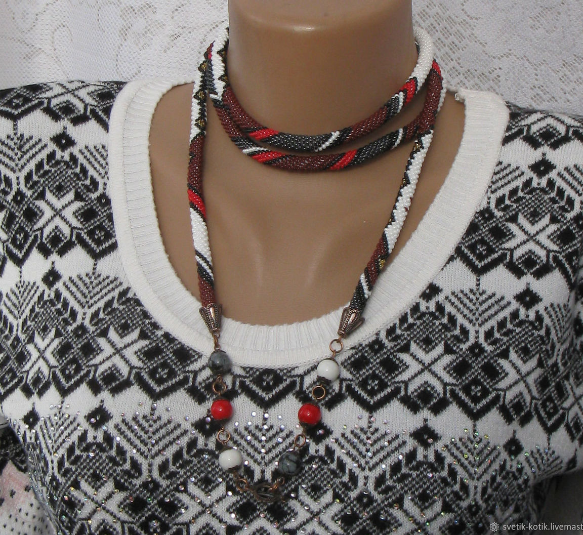 авторская работа, бордовый, лариат, коралл, лариат из бисера, геометрический рисунок, обсидиан, лариат купить, лариат длинный, лариат трансформер, лариат с кистями, лариат из бисера жгут, лариат красный, лариат украшение, лариат бисерный, лариат серый, лариат подарок, лариат повседневный, лариат геометрия, лариат колье с браслетом