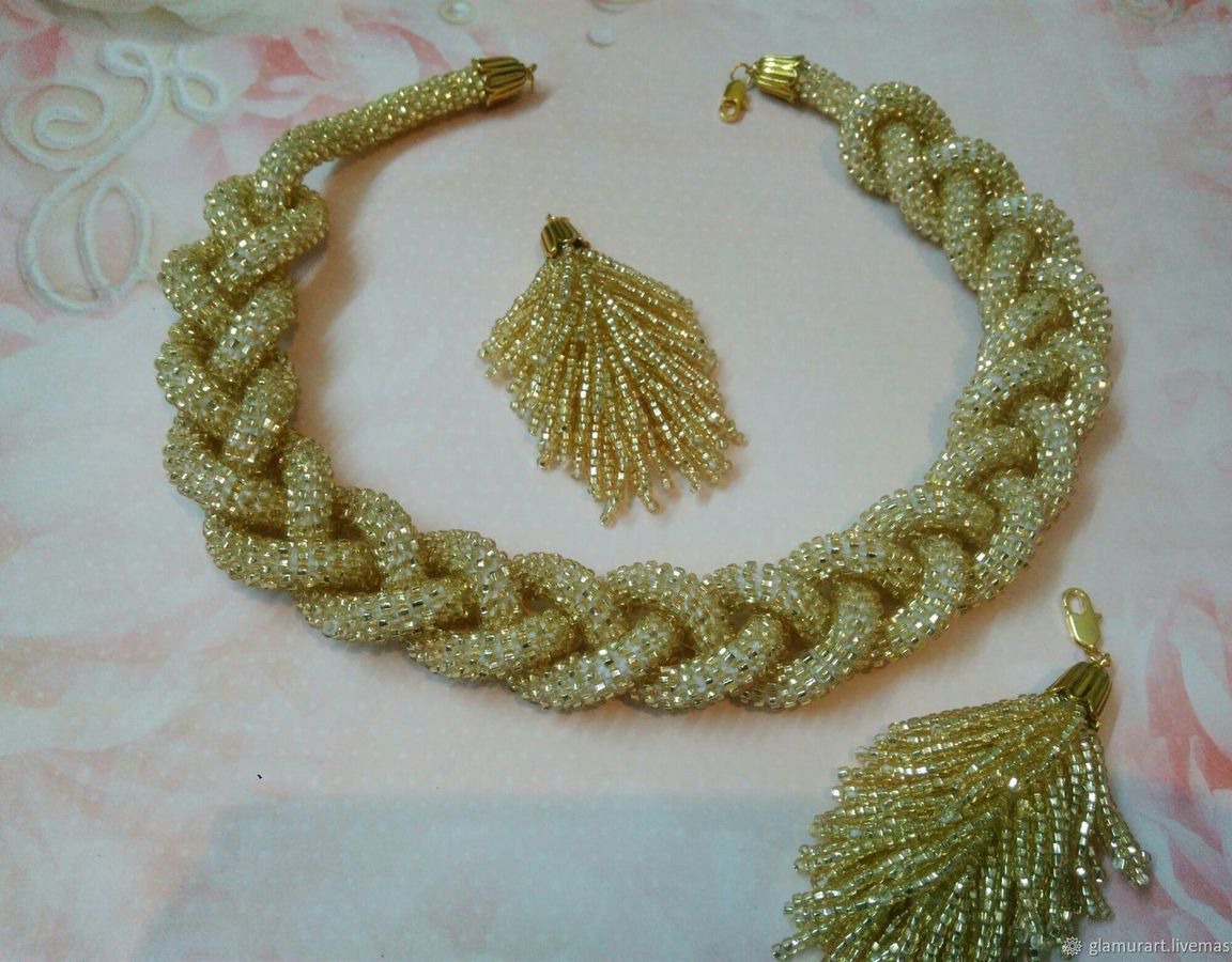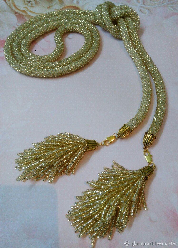 Лариат из бисера "Золото Скифов" со съемными кистями.