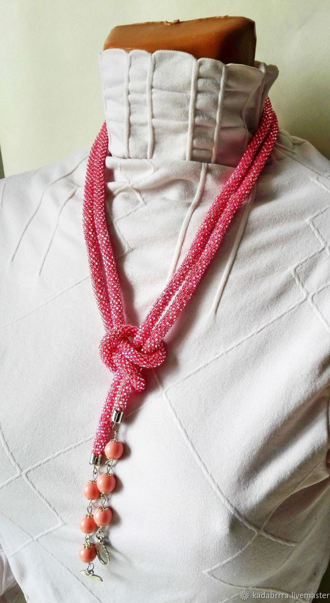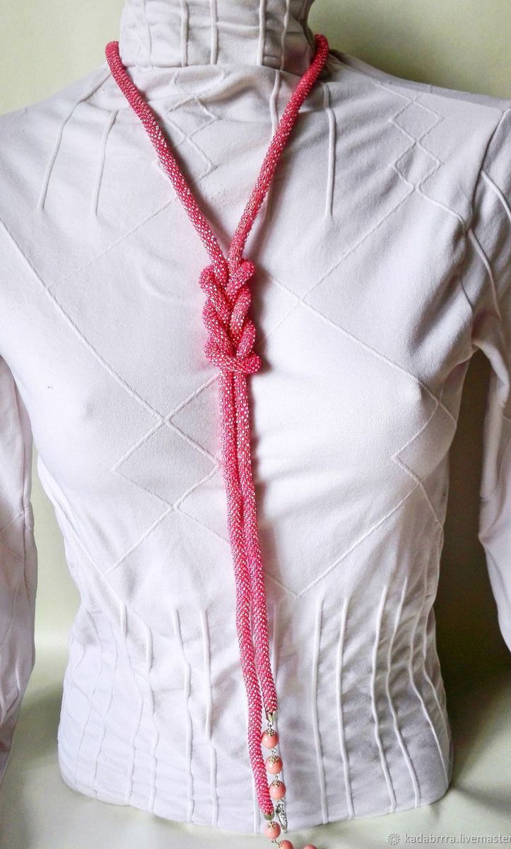 розовый, лариат, жгут, лариат из бисера, жгут из бисера, лариат розовый