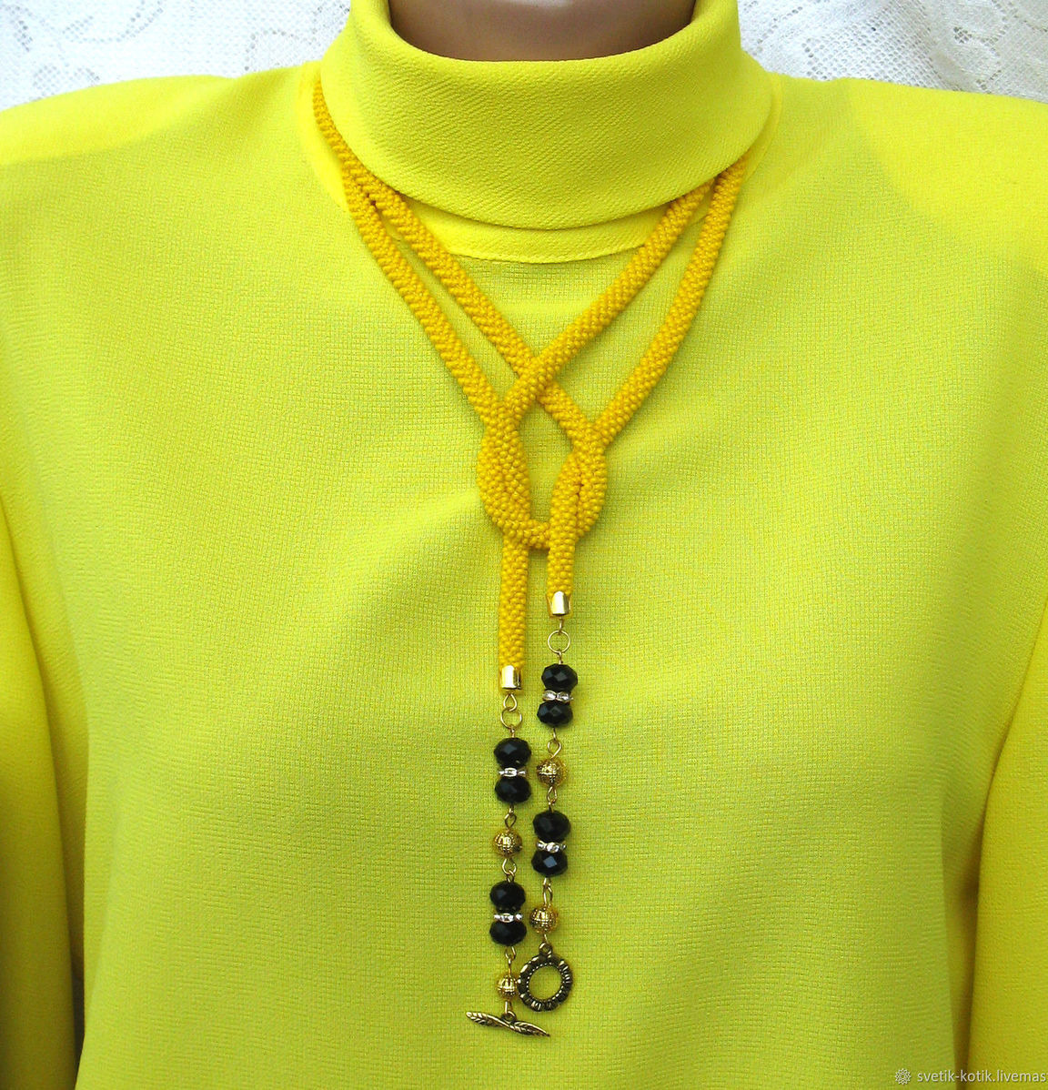желтый, украшение, галстук, радуга, солнце, лимонный, лето, лариат, подарок, украшение на шею, стиль, мода, колье, сотуар, солнечный, жгут, длинное украшение, вязаный жгут, колье длинное
