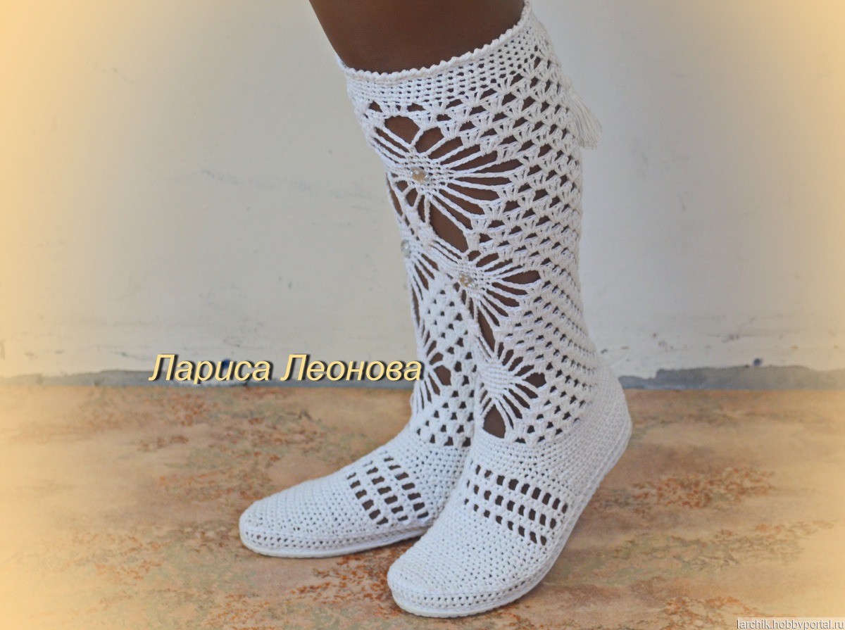 стильные, модные сапожки вязанные крючком, из ниток хб, с добавкой спандекса