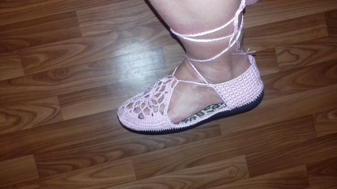 балетки вязаные крючком,на подошве для ходьбы по улице,подошва проклеена,стелька пришита,очень удобные и мягкие.