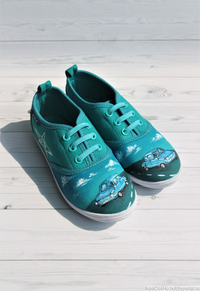 Рисунок на кедах выполнен вручную специальными красками по ткани.