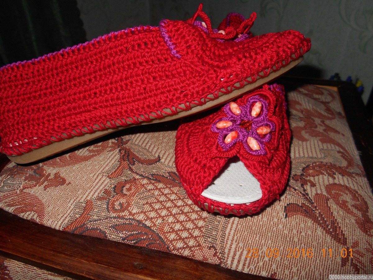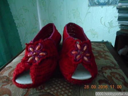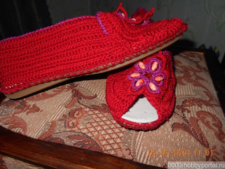 связаны крючком на сплошной подошве, с открытым носком, цветочек выполнен в технике фриволите