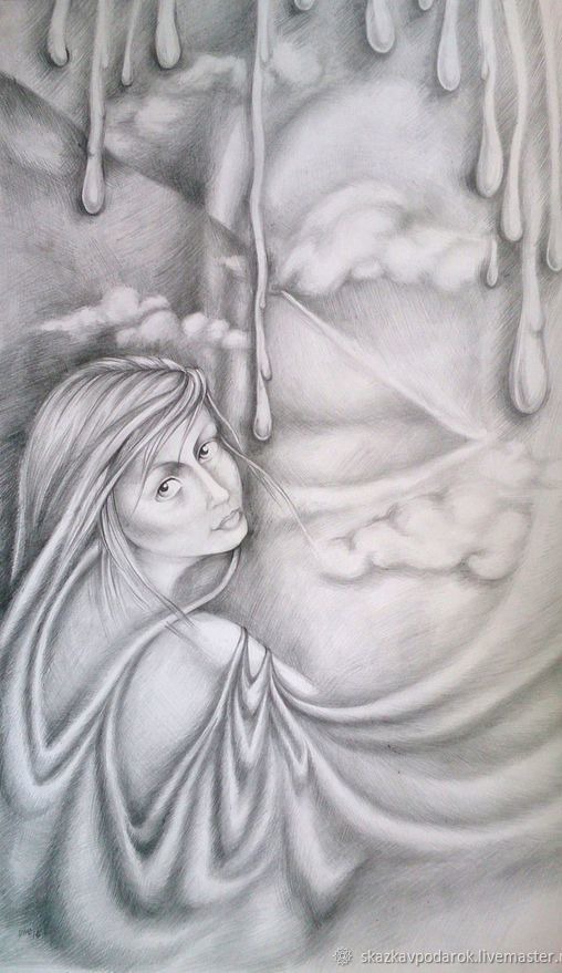 Картина выполнена карандашом на ватмане, закреплена фиксатором. Картина нуждается в оформлении в раму со стеклом.