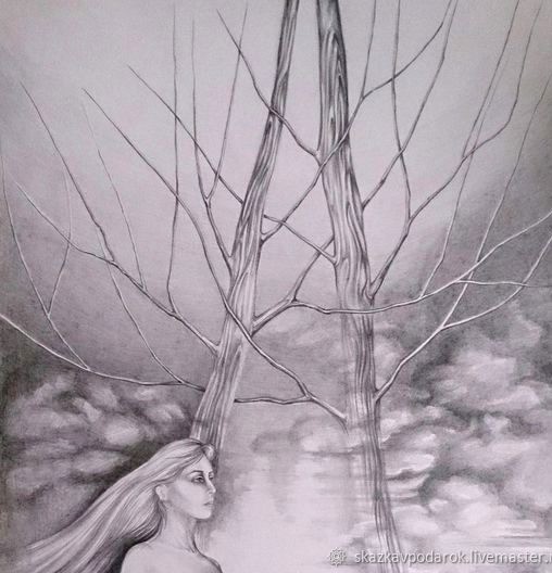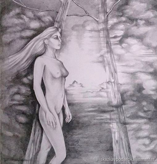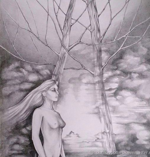 Картина выполнена карандашом на ватмане, закреплена фиксатором. Картина нуждается в оформлении в раму со стеклом.