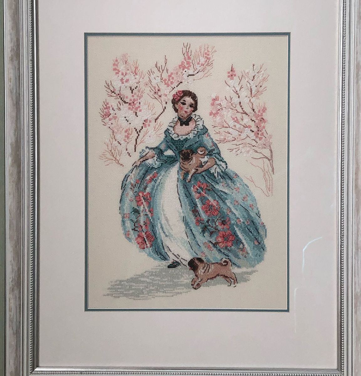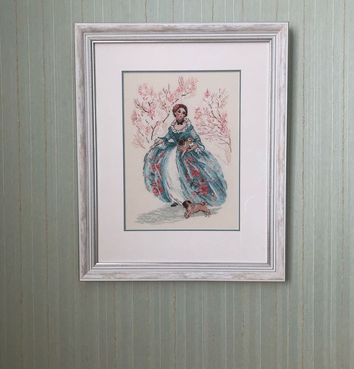 Картина вышита крестиком размер 50,5х41 см оформлена в деревянный багет с двойным паспарту в тон вышивке, стекло музейное, антибликовое. Нежная вышивка достойно оформленная будет великолепным подарком или изюминкой вашего интерьера.