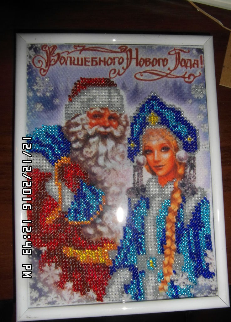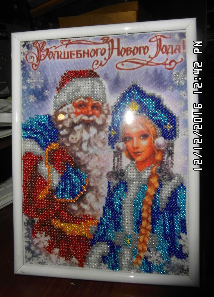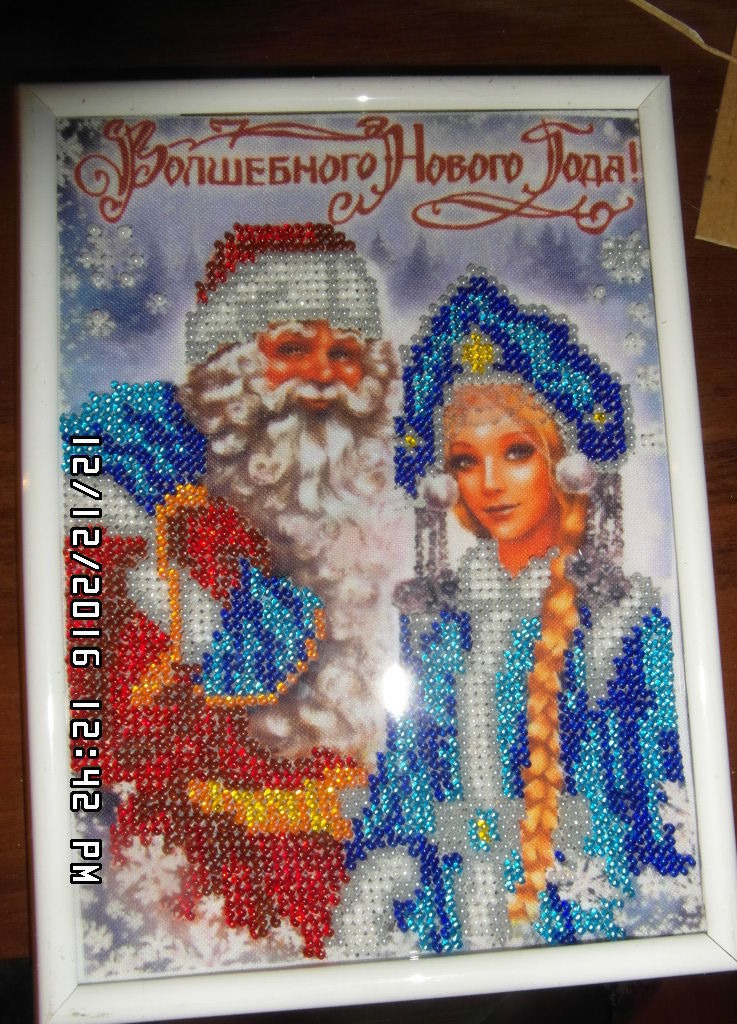 подарок на новый год, комбинированный, готовая работа, бисер чешский, готовый подарок, готовая вышивка