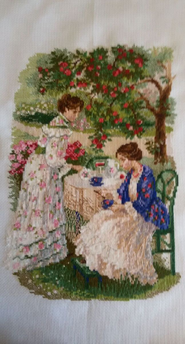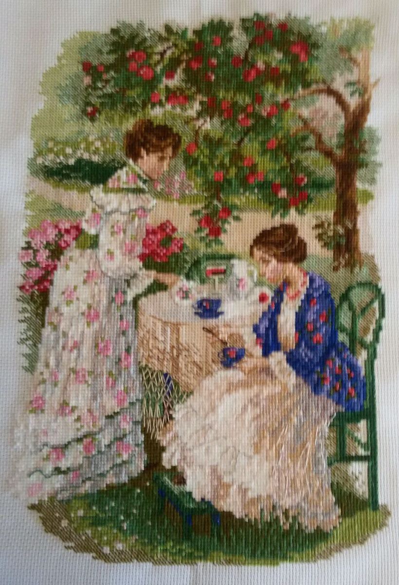 Замечательная вышивка к летнему времени года. Напоминает произведение А.П. Чехова. Эта милая вышивка переносит нас в те далекие времена.. Прекрасный подарок на любой случай. Может стать оригинальным подарком и для дачи, и для дома. В работе использовано 24 цвета нити шерсть-акрил.
