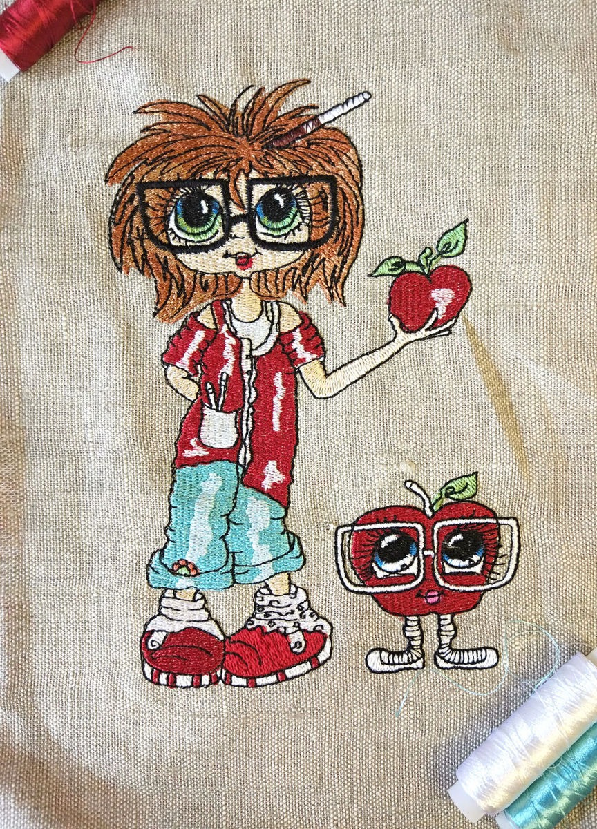 ярко-красный, вышивка, машинная вышивка, пэчворк, квилтинг, картина, для сумки, школа, девочка, яблоко, вставка, картина в детскую, аппликации, ботаника, вышивка на льне, вышитая, квилинг, картина для девочки, ученый, наука