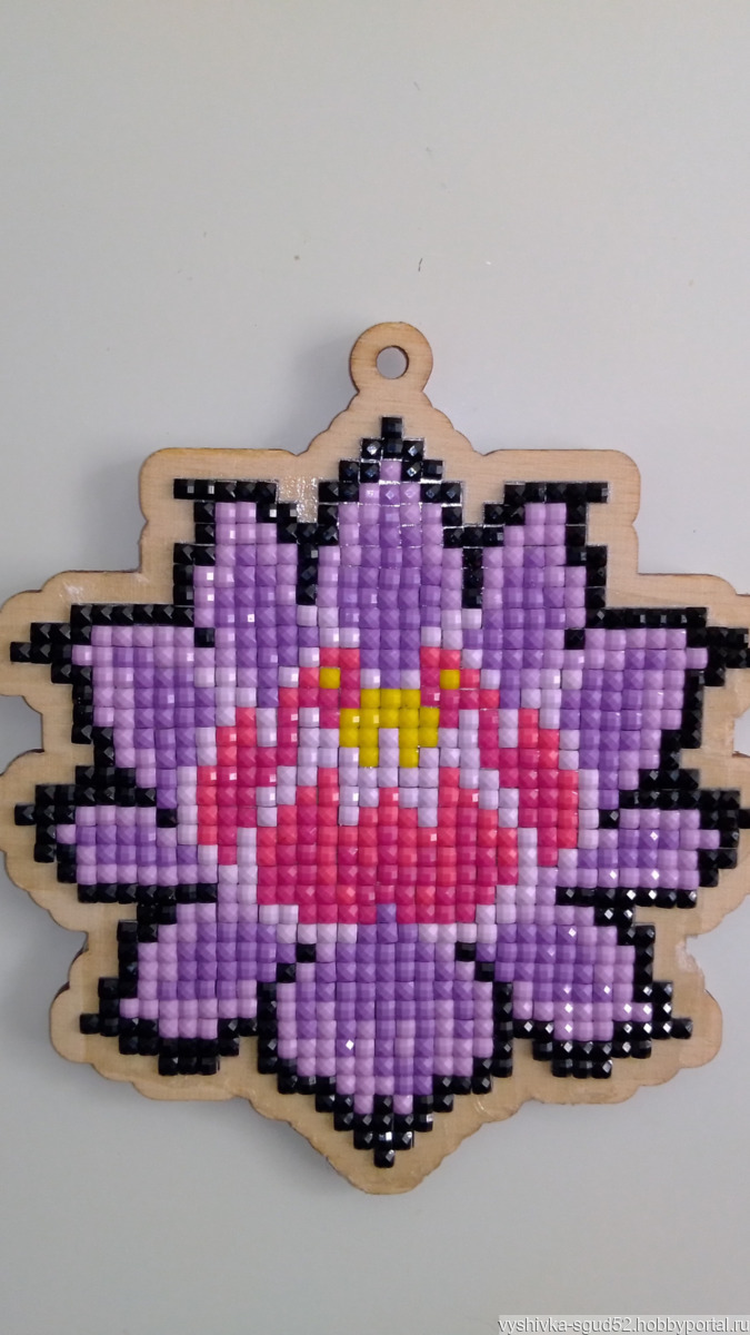 Выполнен магнит акриловыми стразами на деревянной основе.