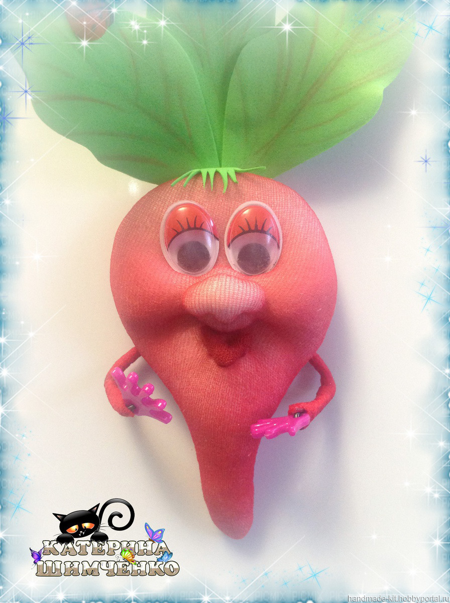 За счёт проволочного каркаса ручкам можно придавать любой изгиб. В руки свеколке можно вложить цветок или карточку с веселой надписью.