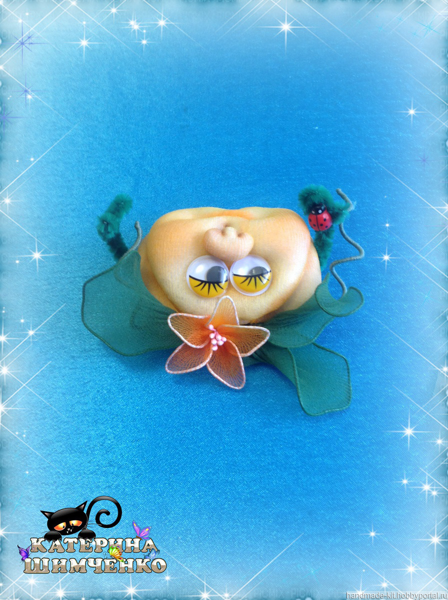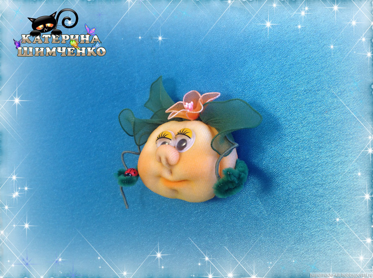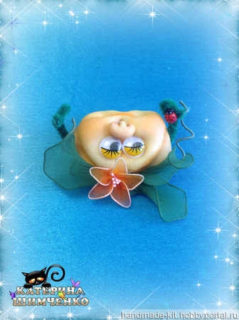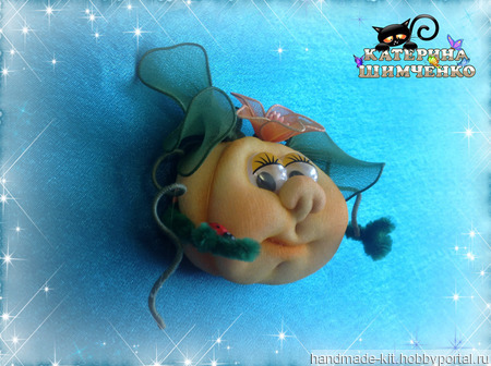 За счёт каркаса из синельной (пушистой) проволоки ручкам можно придавать любой изгиб. Также изгибаются за счёт проволочного каркаса листья, веточки и лепестки цветка. В одной руке у тыковки находится божья коровка, а во вторую можно вложить цветок или карточку с веселой надписью.