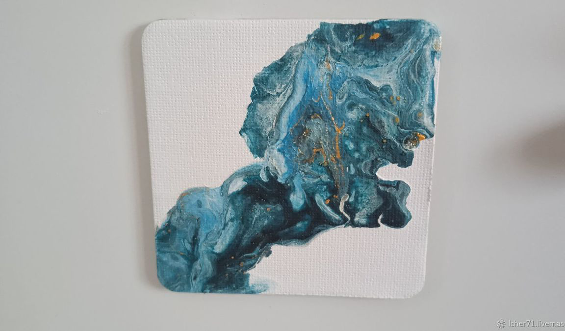 Магниты на холодильник ручной работы на холсте (абстракция). Выполнены в технике флюид арт (заливка жидким акрилом). Оригинальный, стильный, необычный и эксклюзивный подарок, способный не только удивить, но и превратить холодильник в галерею искусств.