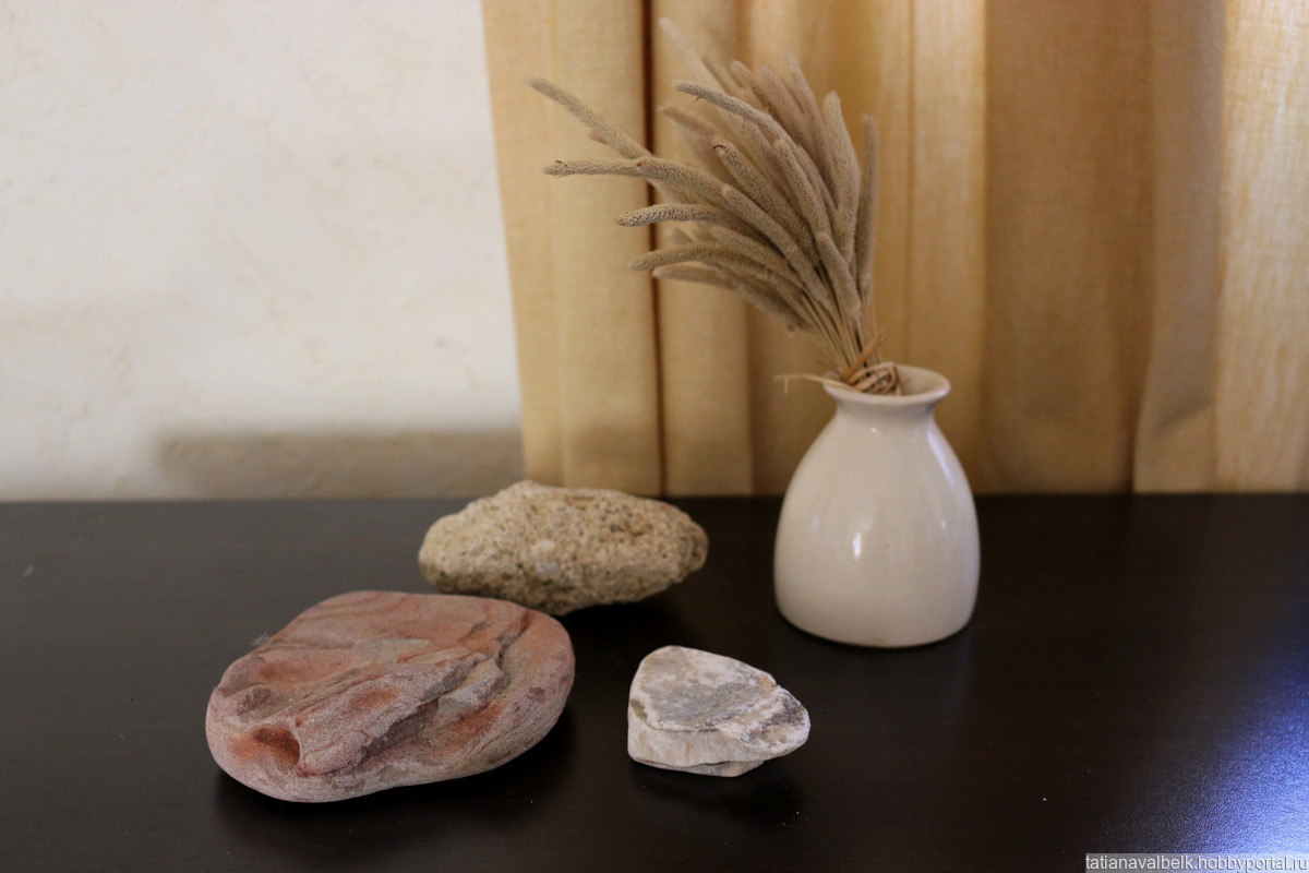 - набор 1 - три разных камня, размеры: большой розовый диам. 11 см, пористый желтый длина 11 см, маленький сероватый 8 см.