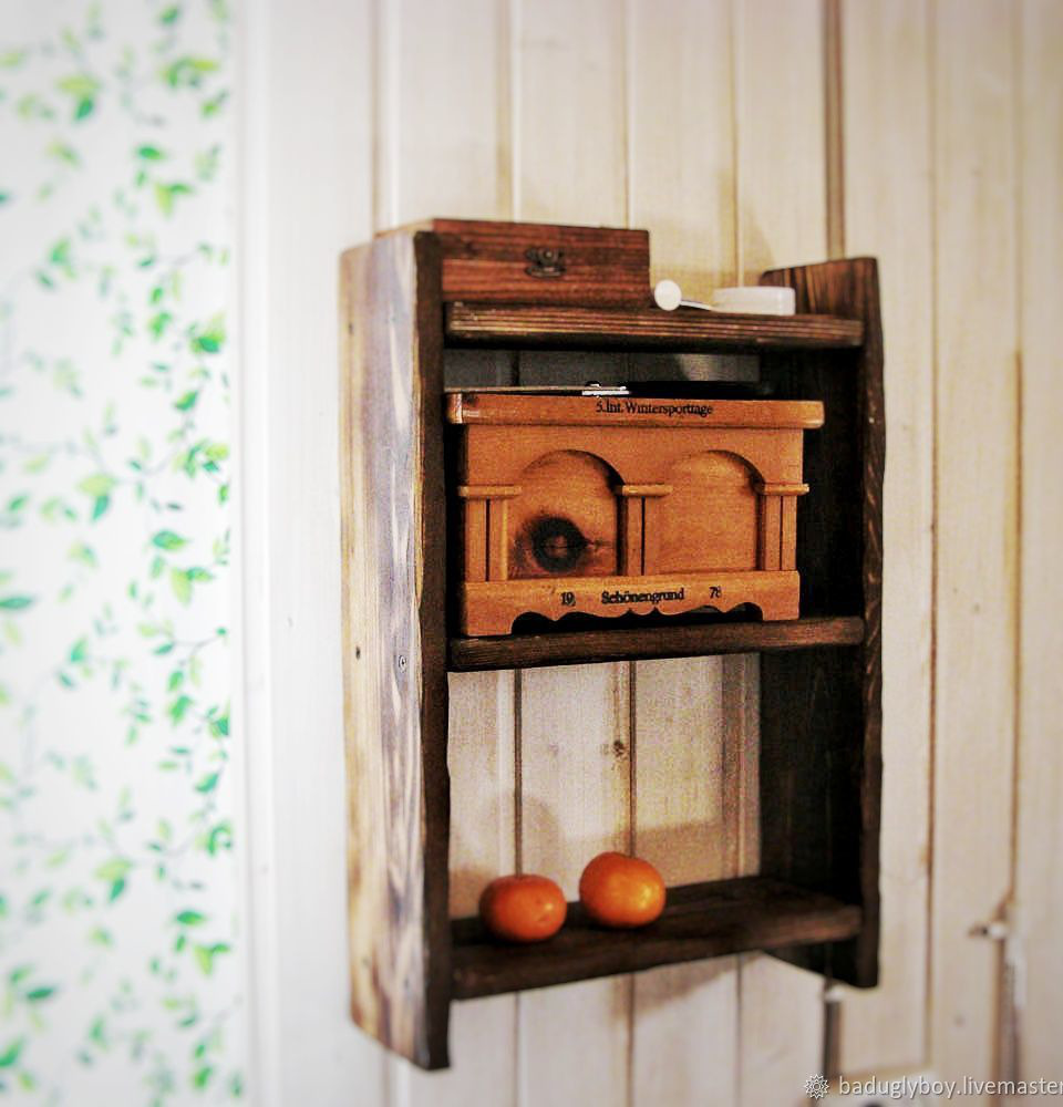 Такая полочка очень пригодится хозяйке на кухне. Прекрасно подойдет для хранения специй и других полезных вещей.