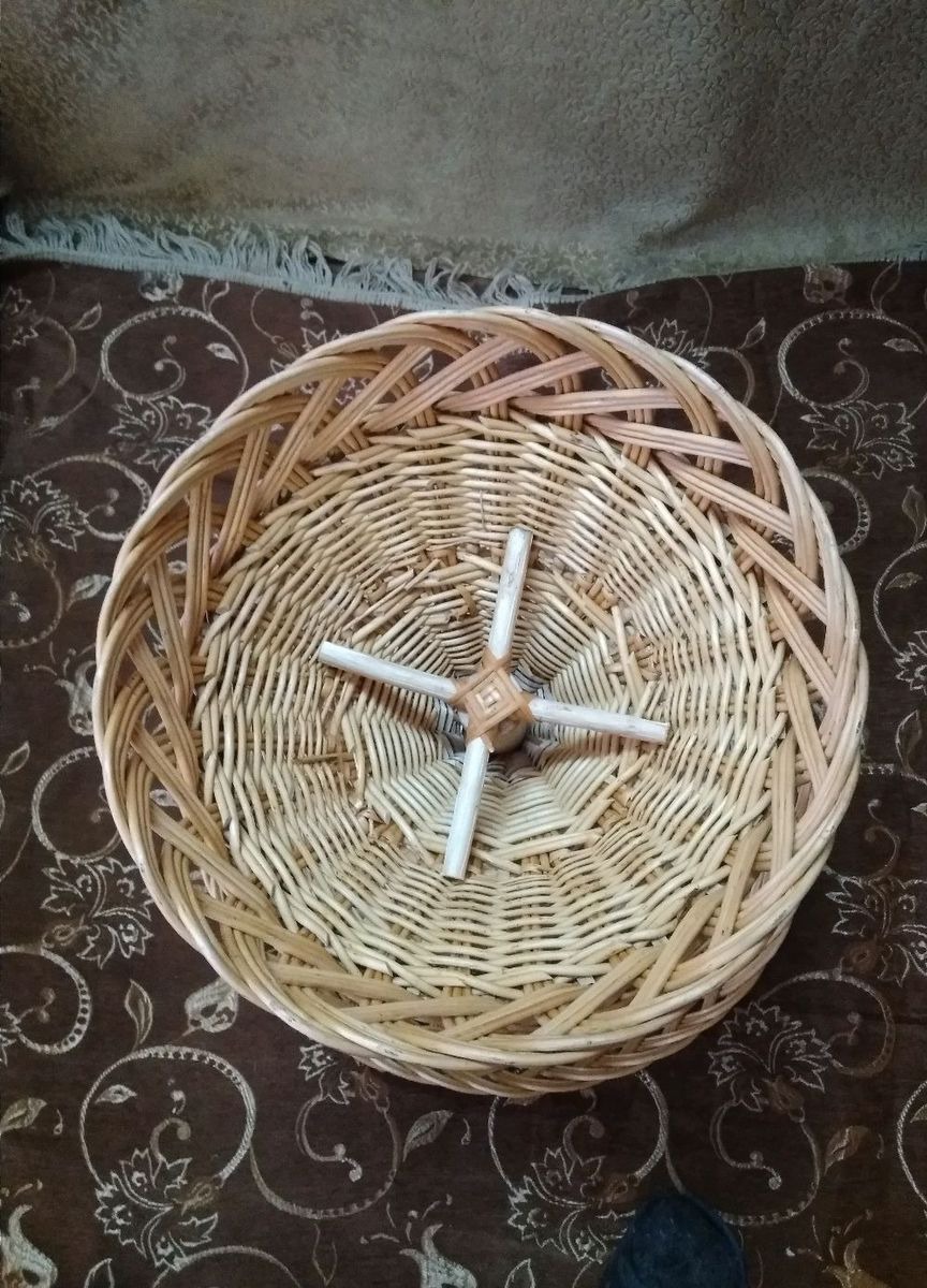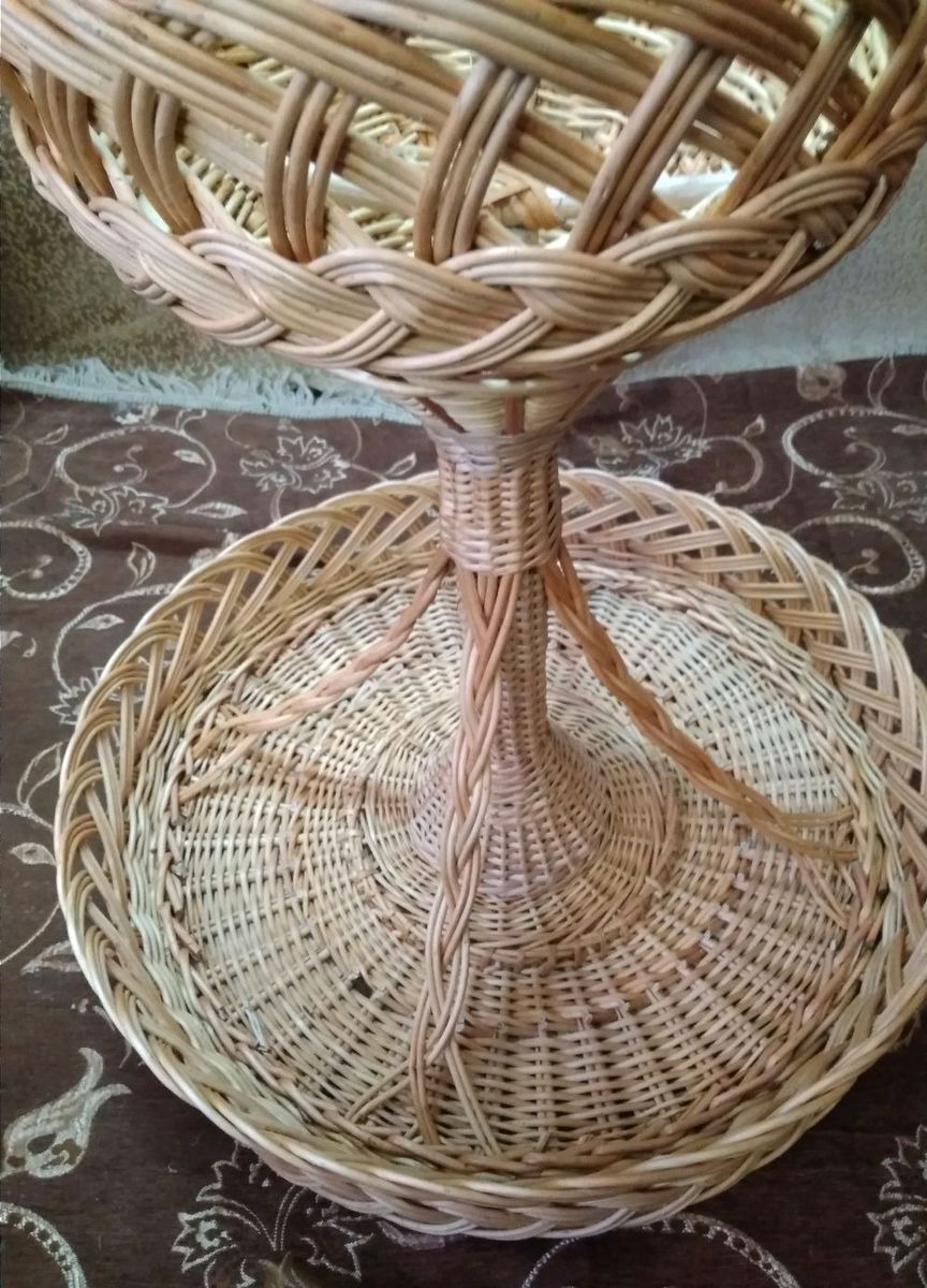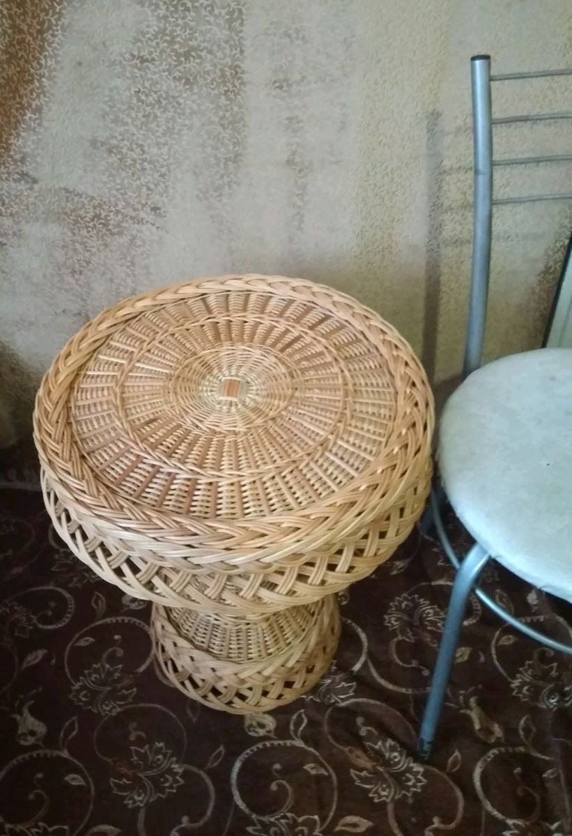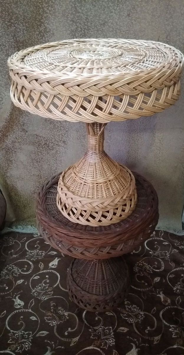 Изящный журнальный столик, выполненный целиком из ивовой лозы, без каркаса. Несмотря на видимую хрупкость обладает устойчивостью и большим запасом прочности.