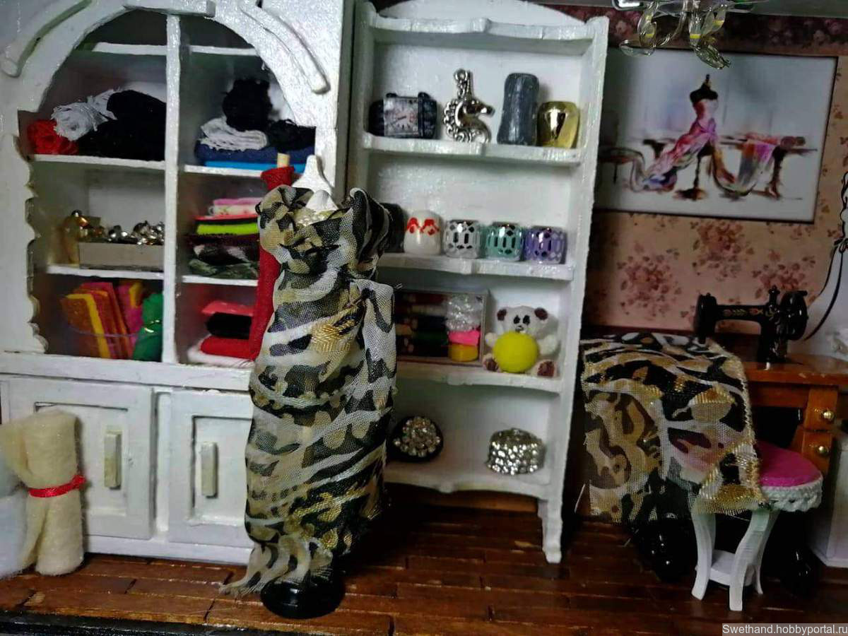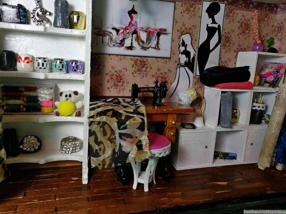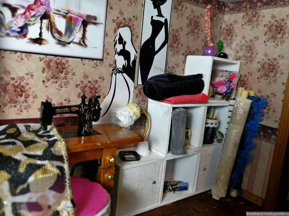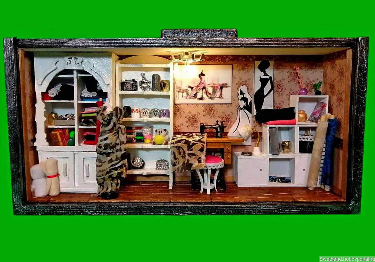 Ателье в миниатюре. Акриловое стекло съёмное, можно все потрогать. Размер: 36*18*8,5 см.