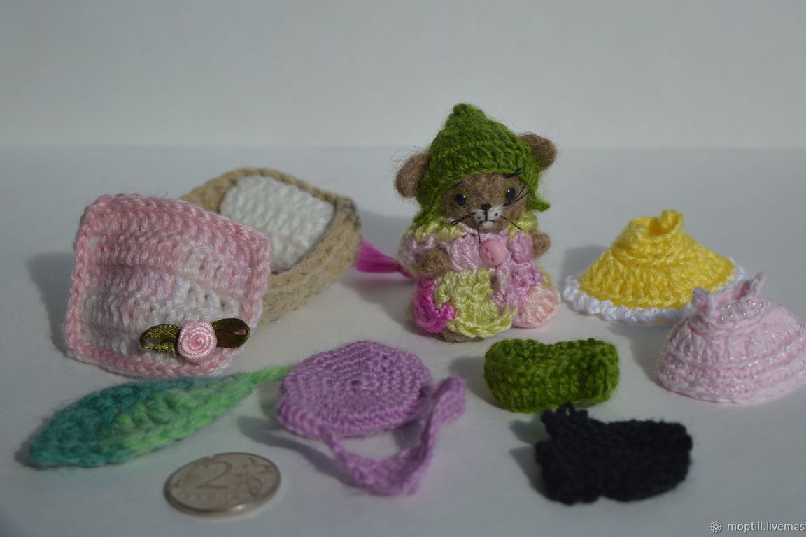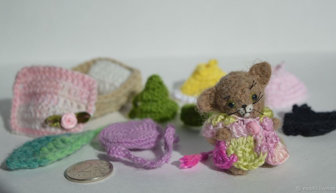 Малышонок-котенок-львенок, крохотулька, нежнейшее тепленькое создание, чудо на ладошке, так и хочется его тискать, одевать, фотографировать). Лапочки мягкие, может сидеть, стоять не может. Лапки двигаются, но не фиксируются в положениях. В комплекте коробка Собянина), люлька, подушечка, одеяльце, купальничек, шляпка, два платья, шапочка, снуд, берет, бактус, листочек, пальтишко. Добавлю повязочки на голову. Котенок из шерсти верблюда.