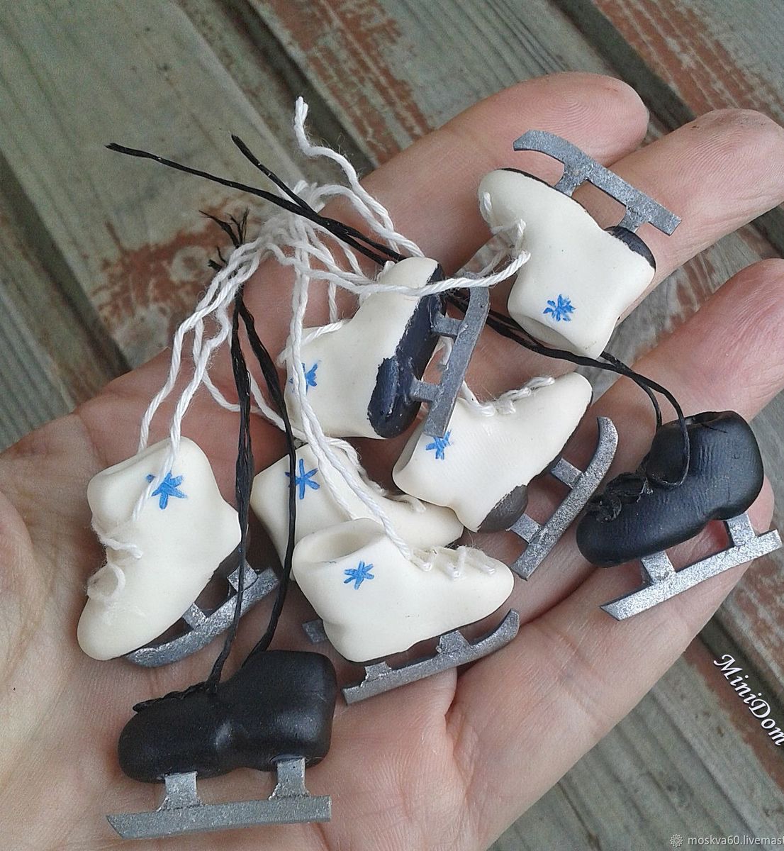 Коньки изготовлены из полимерной глины, шнуровка имитирована хлопковым шнуром - могут быть белыми женскими или черными мужскими коньками