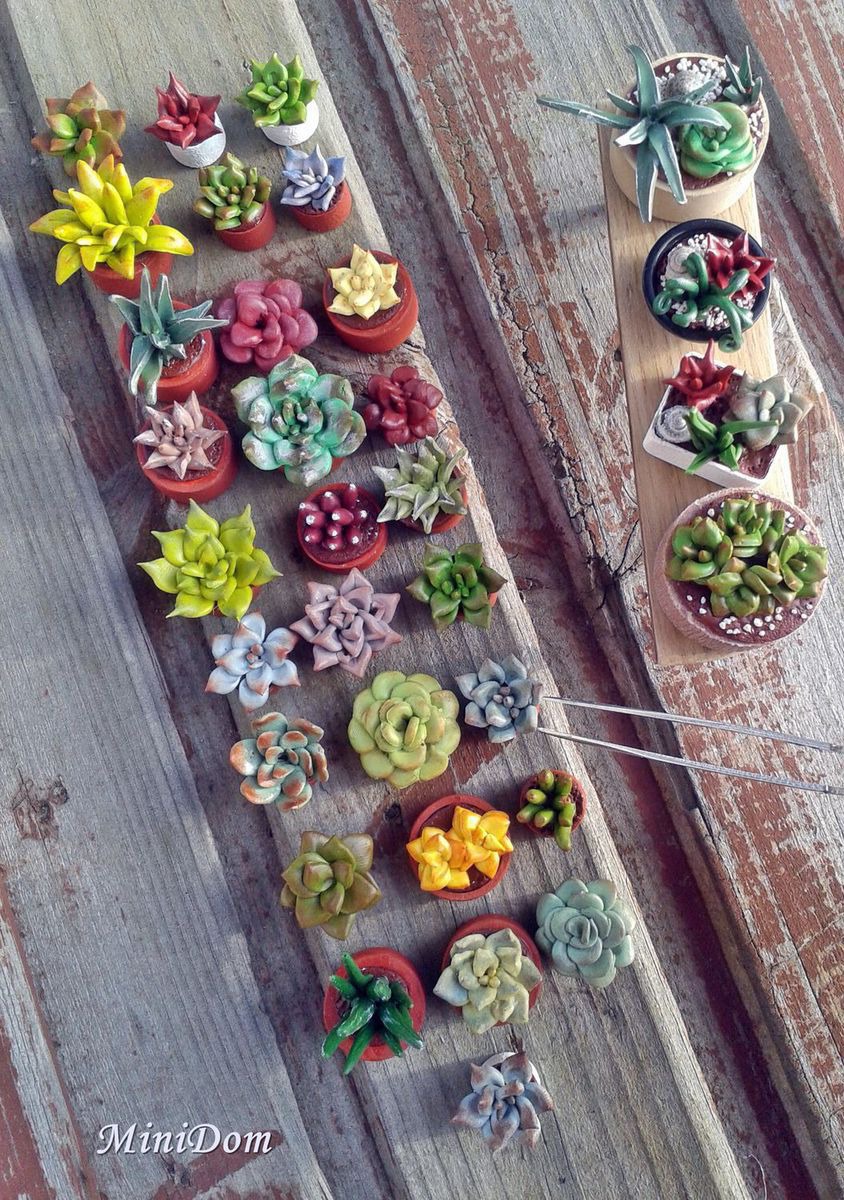 Эта коллекция суккулентов сделана из полимерной глины полностью вручную без использования молдов.