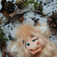 стеклянные глаза, металлический гранулят, подвеска, миништоф, лента декоративная, полимерная глина, Вязаное полотно