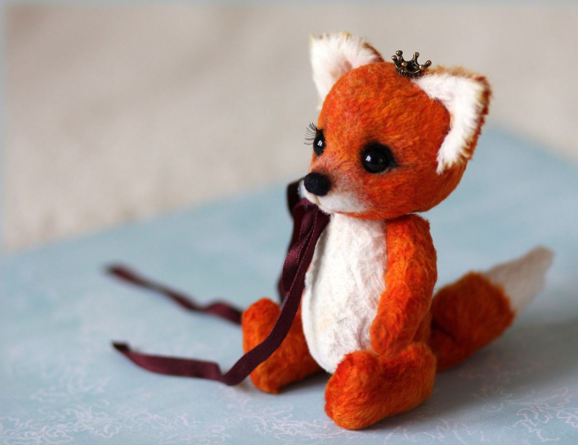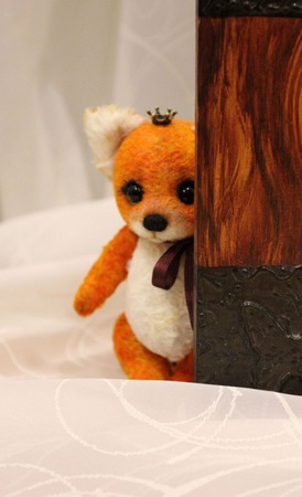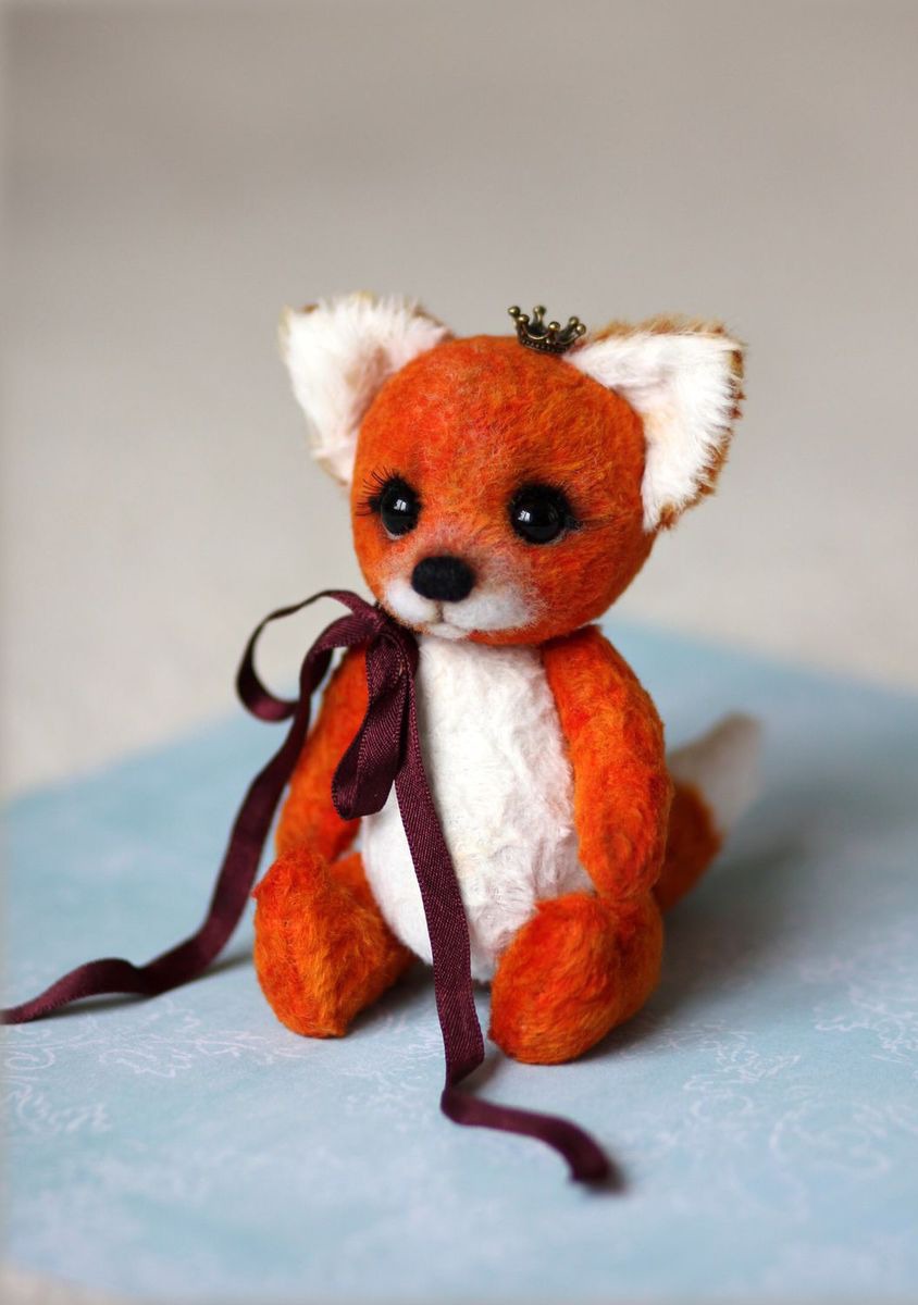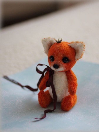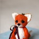 Лисенок тедди, выполнен по выкройке К. Беспаловой. Материал - плюш ярко-оранжевого и белого цвета. Рост - 13 см (без ушек), 5 шплинтов, ручки-ножки-голова подвижные. Стеклянные глазки с ресницами, хвостик армирован. Лисенок утяжелен металлическим гранулятом, стоять не умеет. Ищет домик! Выполнен в единственном экземпляре.