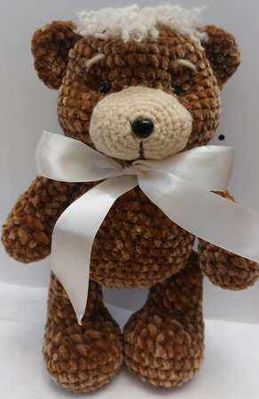 Вязаный медведь из велюровой пряжи, очень мягкая и приятная игрушка для детей