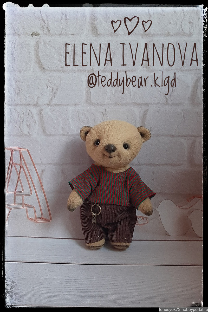 Мишка Тедди, сшит полностью вручную из немецкой вискозы, набит древесными опилками, глаза вшитые стеклянные, руки и ноги подвижные на шплинтах,одежда съемная.