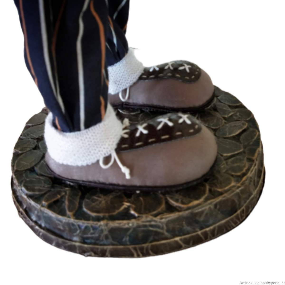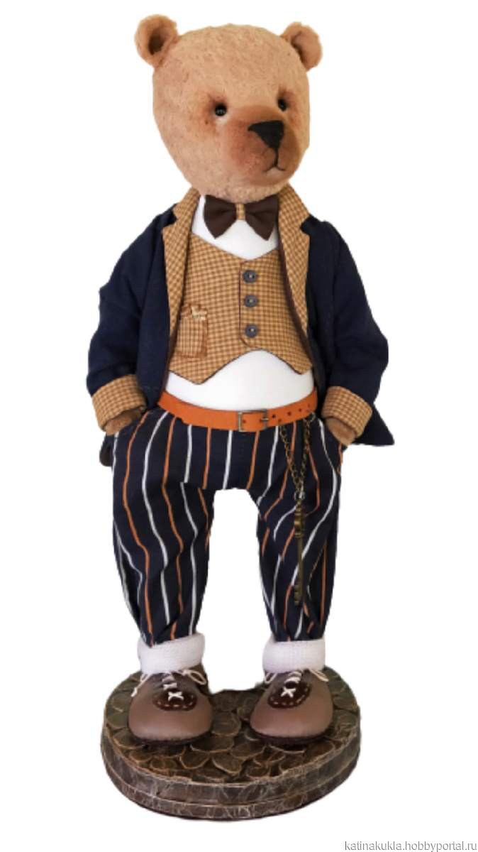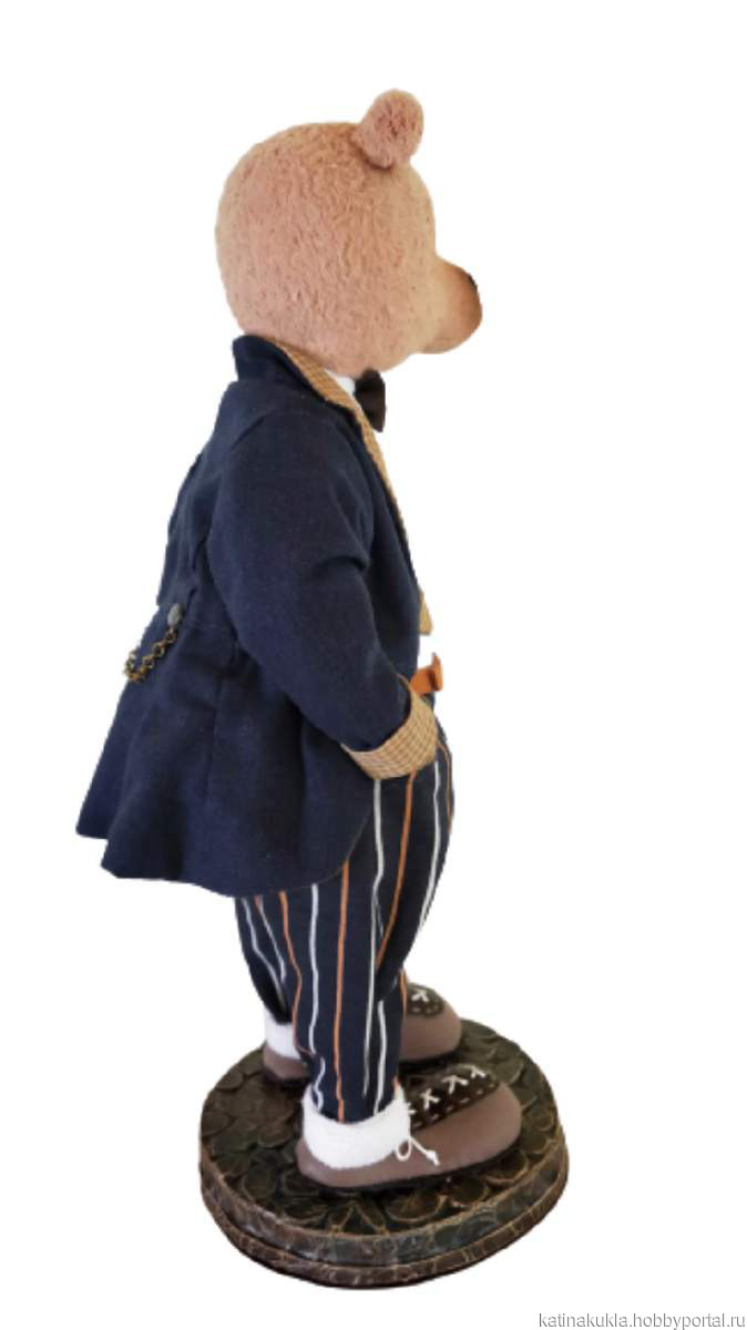 Интерьерная кукла "Мишка-пижон". Рост - 40 см с подставкой. Выполнена в смешанной технике. Голова набита опилками.