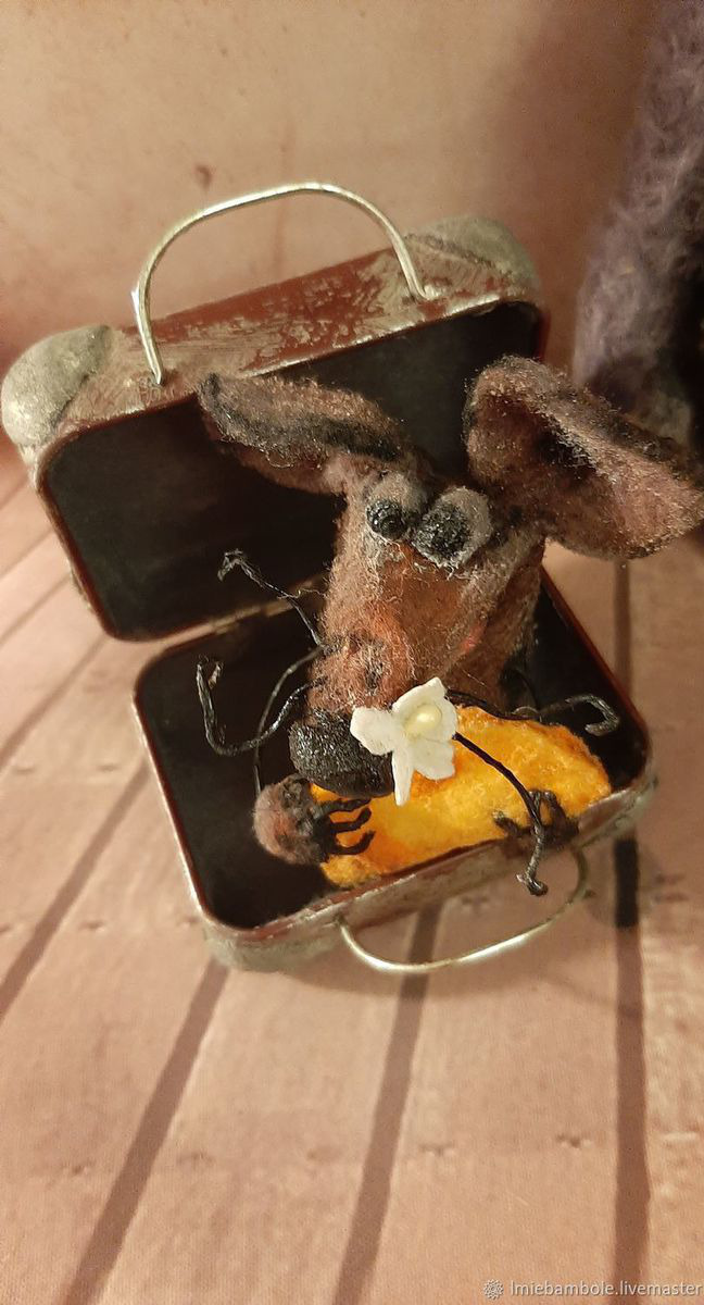У мишки есть старенький чемоданчик .., а в нем - забавный, хитрющий Крыс ! Друг и помощник, да еще в придачу - символ 2020 года! В руках у Крысика - большой кусок любимого сыра... куда же без него!!!