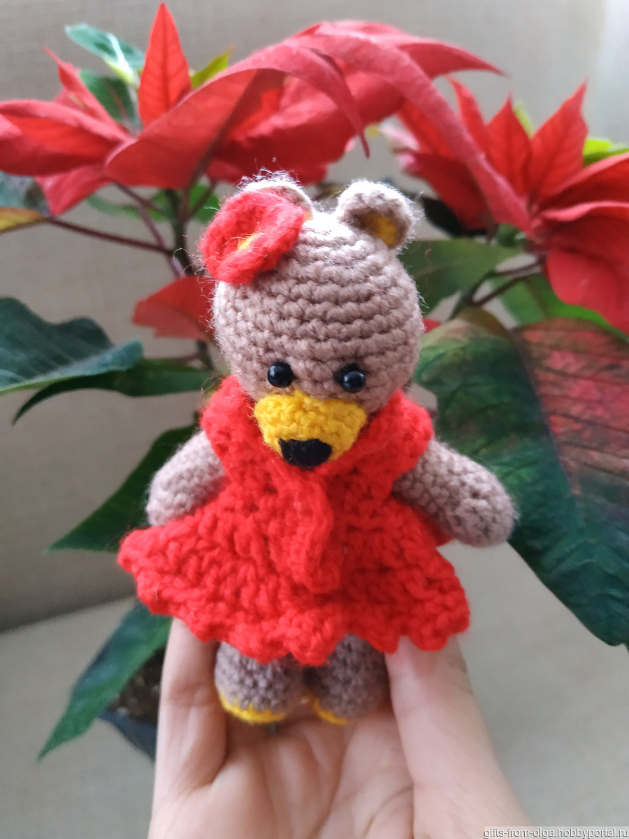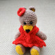 Эта крошка мишутка очень яркая, носит красное платье, она легко поместится в карман. Станет отличным маленьким подарком, который можно везде носить с собой.
