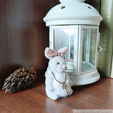 Зайка Хранитель выполнен в технике тедди. Подвижные лапы, голова. Самостоятельно сидит, стоит с опорой. Наполнение опилки. Плюш и искусственный мех. Нос лепной, глазки стеклянные. Маленький зайка, рост 9 см с ушками, сидя-6,5 см. Оригинальный подарок.