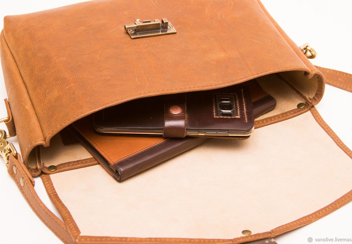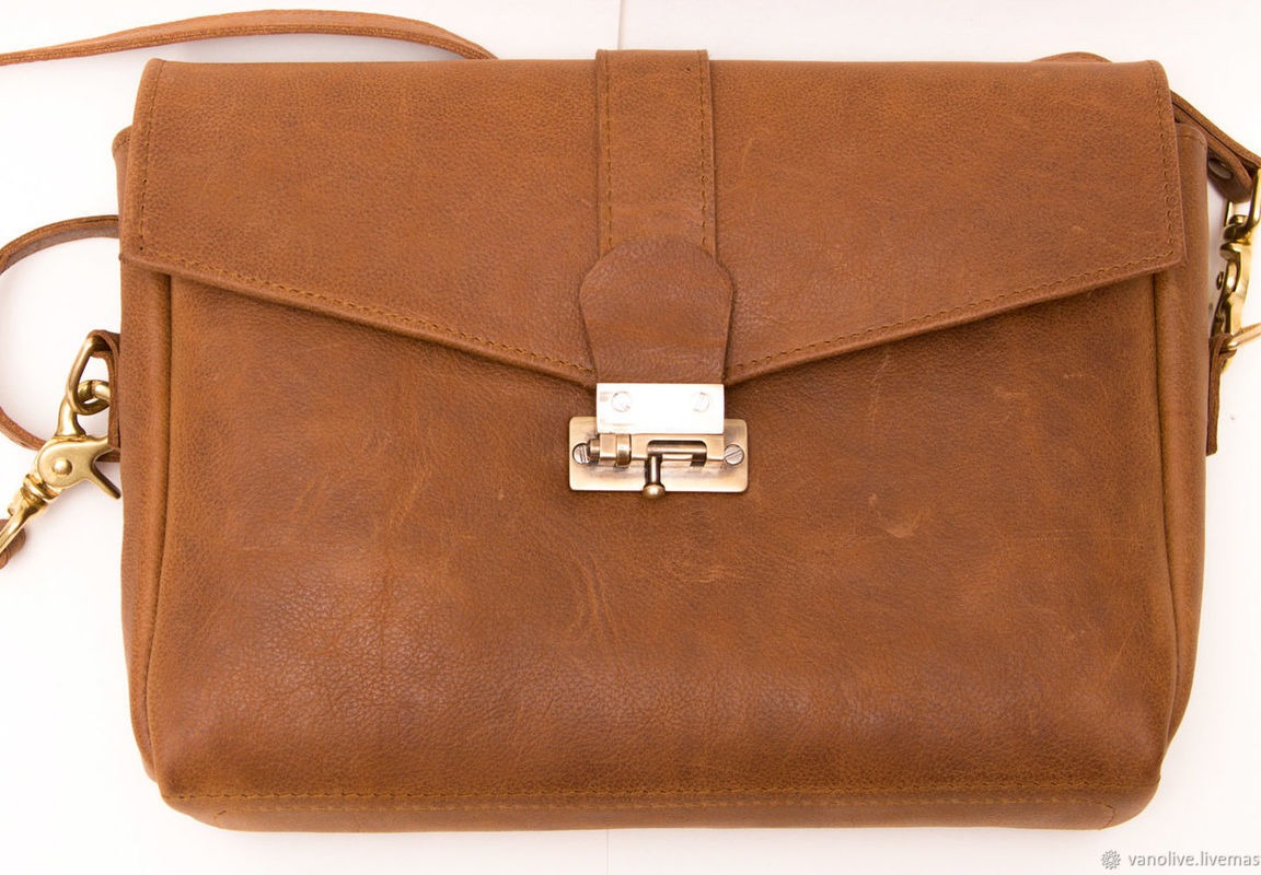 кожаная сумка, женская сумка, сумка из натуральной кожи, сумка через плечо, авторская сумка, мужская сумка, шпигалет, защелка, латунная фурнитура, латунная застежка, рыжая кожанная сумка, светло-коричневая сумка, сумка с кожанной подкладкой