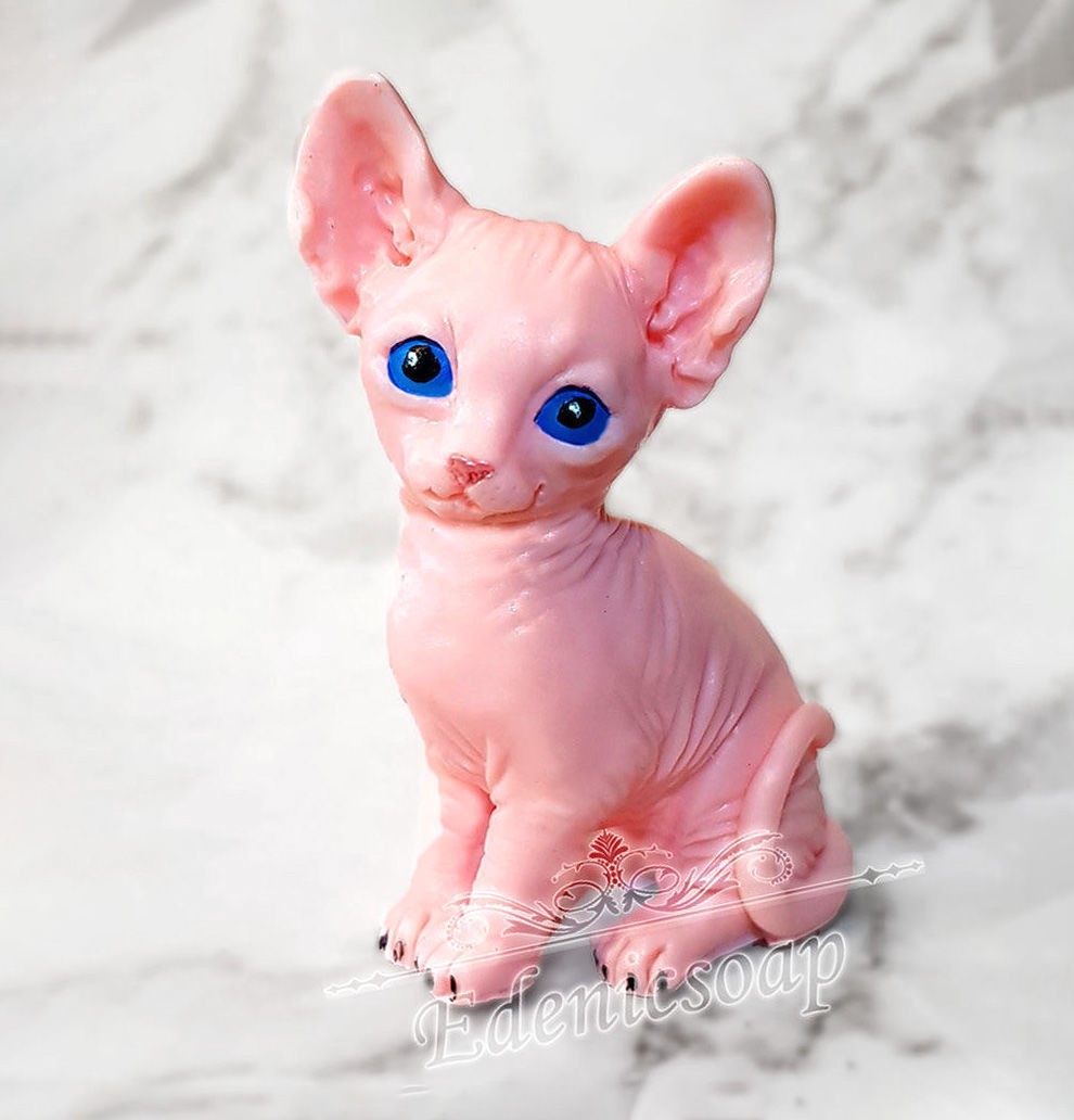 Сувенир ручная работа "Котенок сфинкса" подарок кошка розовый