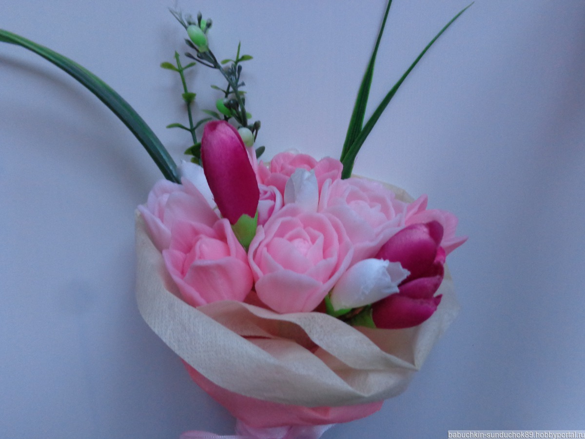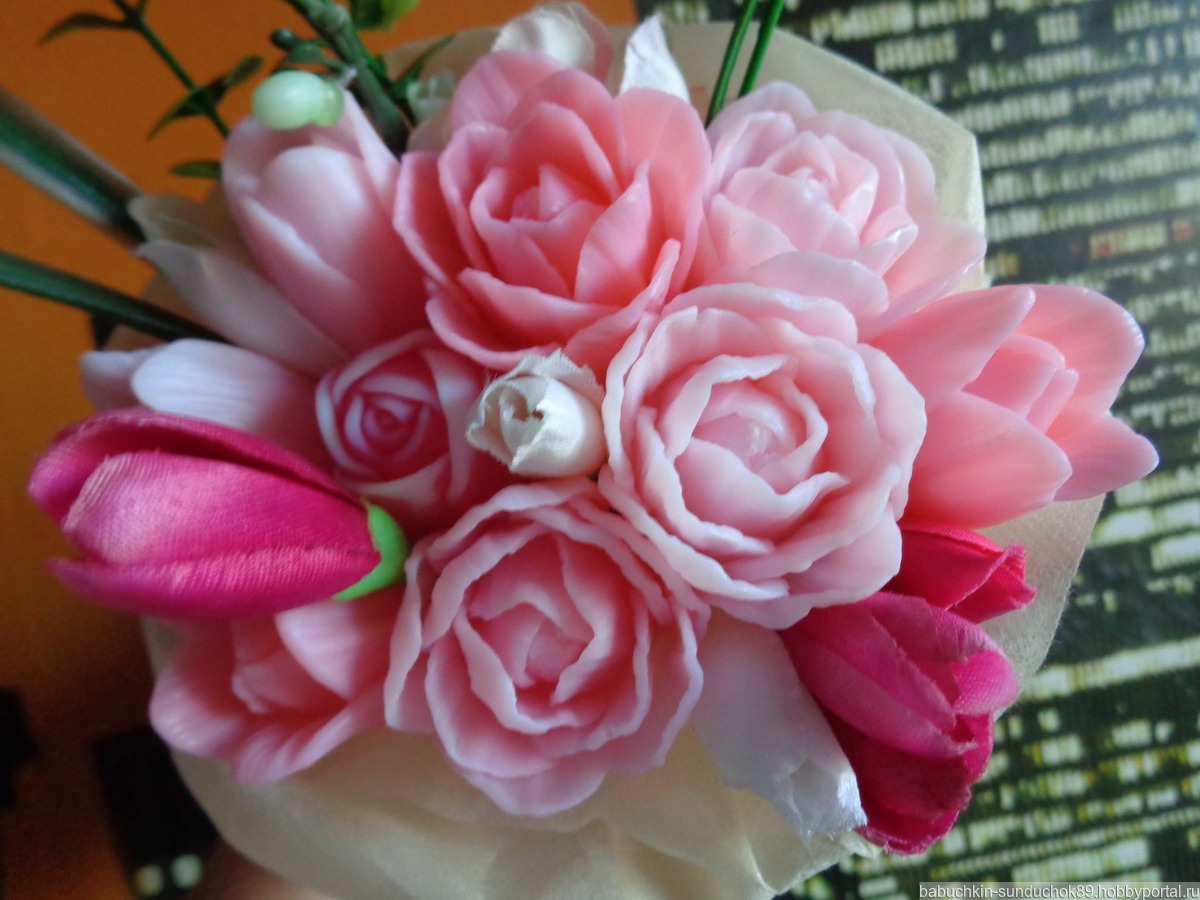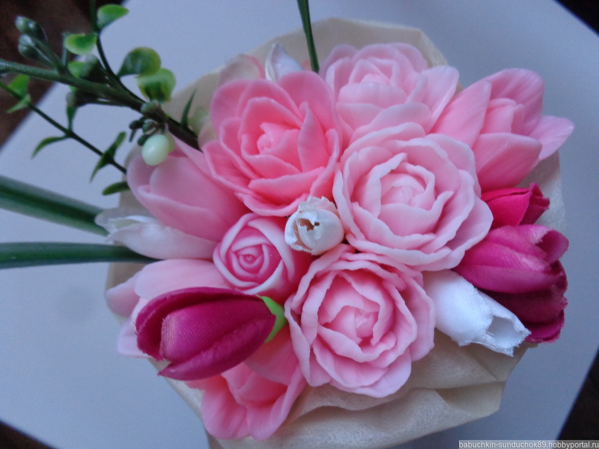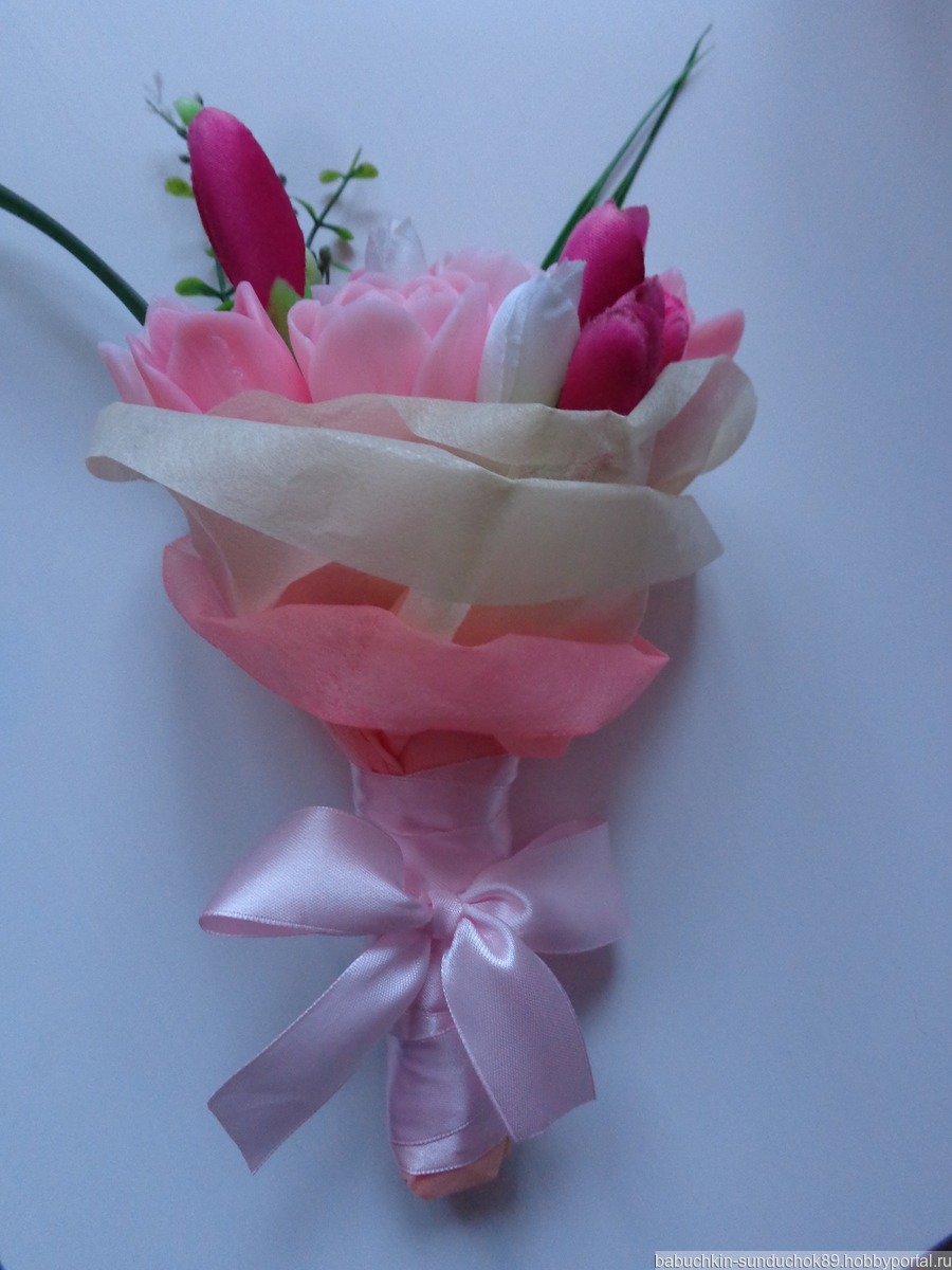 Букет тюльпанов из мыла великолепный и оригинальный подарок на любой праздник. Такой букет не завянет, а поэтому будет долго украшать и ароматизировать интерьер и радовать глаз.