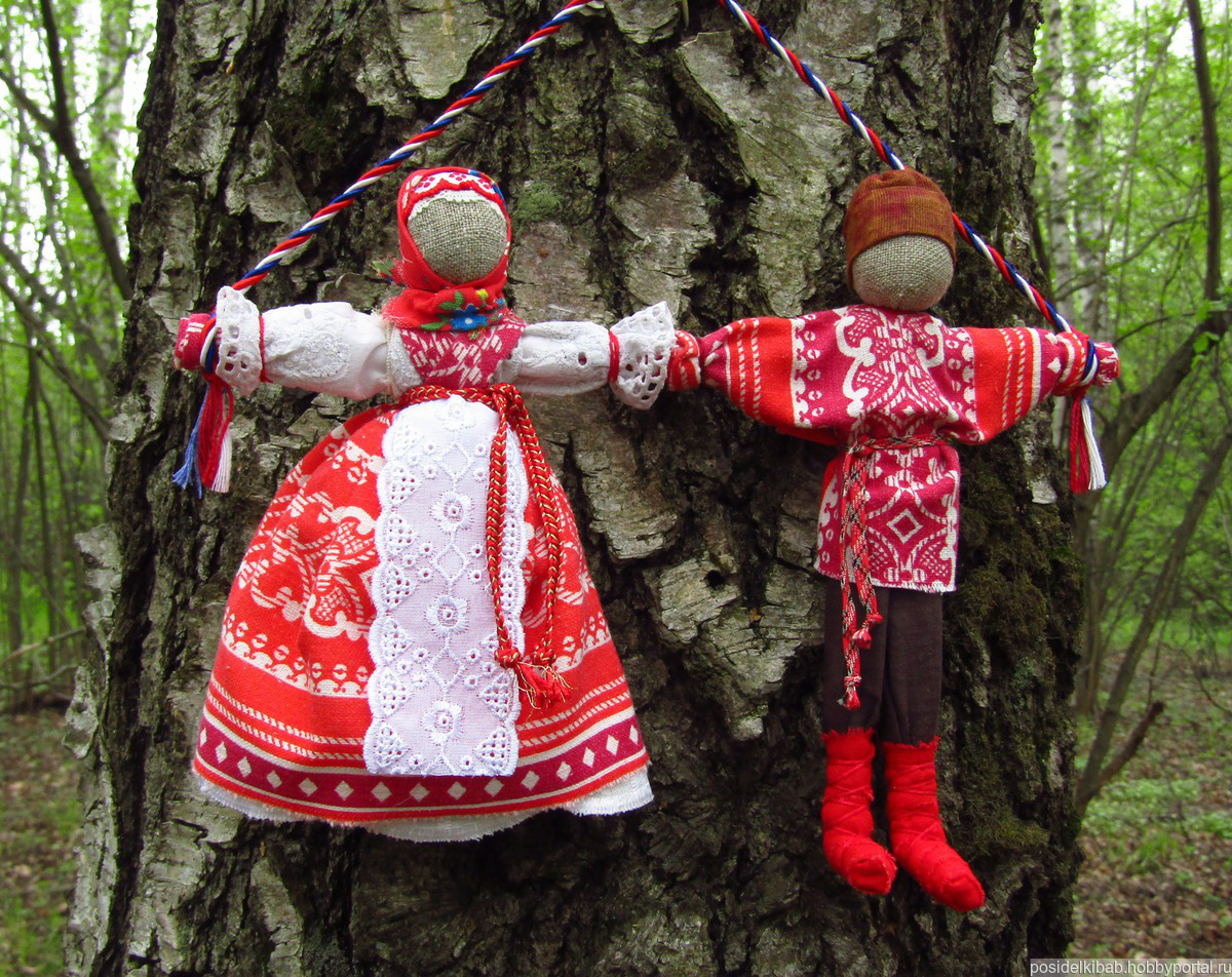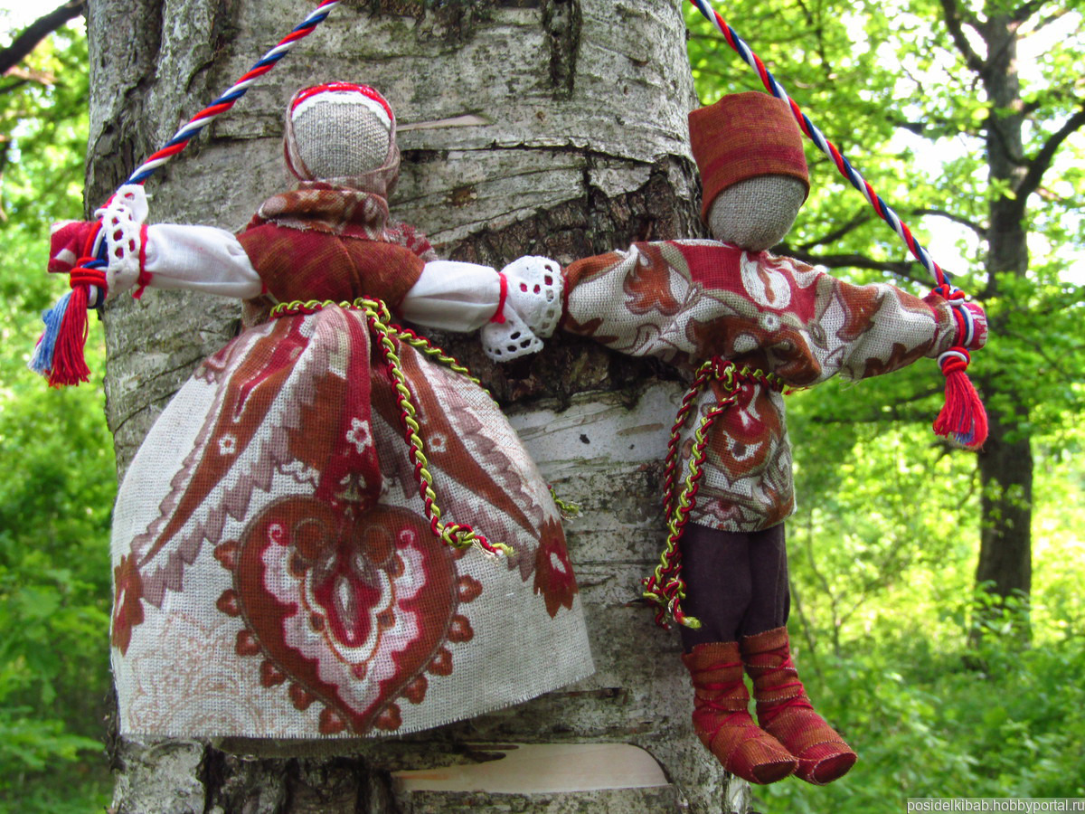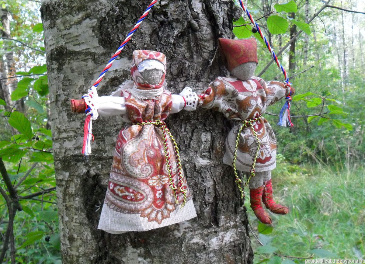Кукла Неразлучники - символ и оберег крепкого семейного союза. По старинной русской традиции во главе свадебного поезда, везущего молодую семейную пару из церкви после венчания, подвешивали пару кукол Неразлучников. Эти куклы должны были уберечь молодоженов от злых и завистливых глаз (от сглаза). Молодые супруги связаны одной крепкой рукой, их нельзя разлучить, теперь они вместе на век.