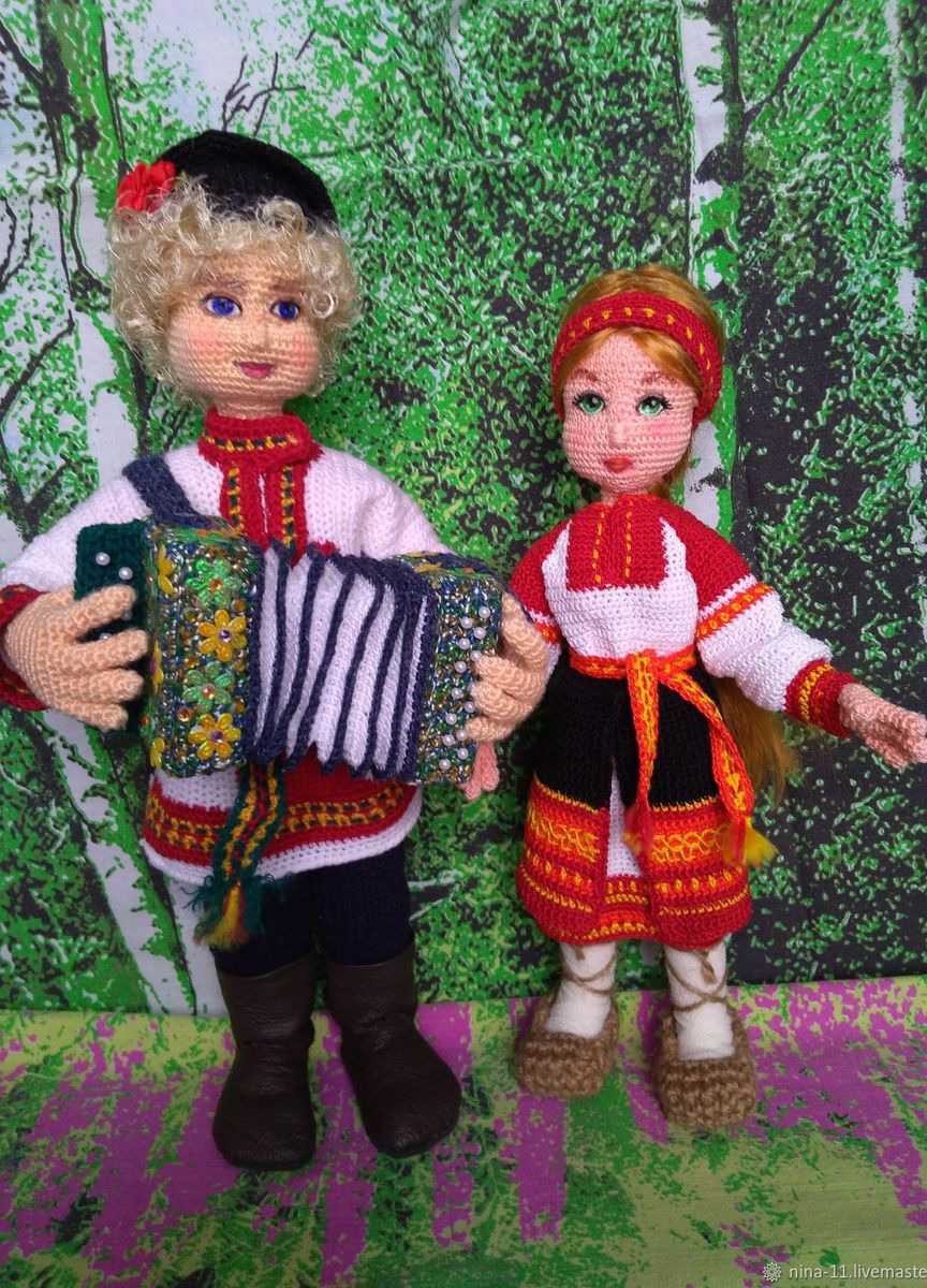Куклы уверенно стоят самостоятельно, ручки и ножки сгибаются, на гармошке можно растянуть меха.