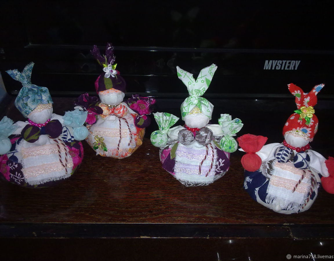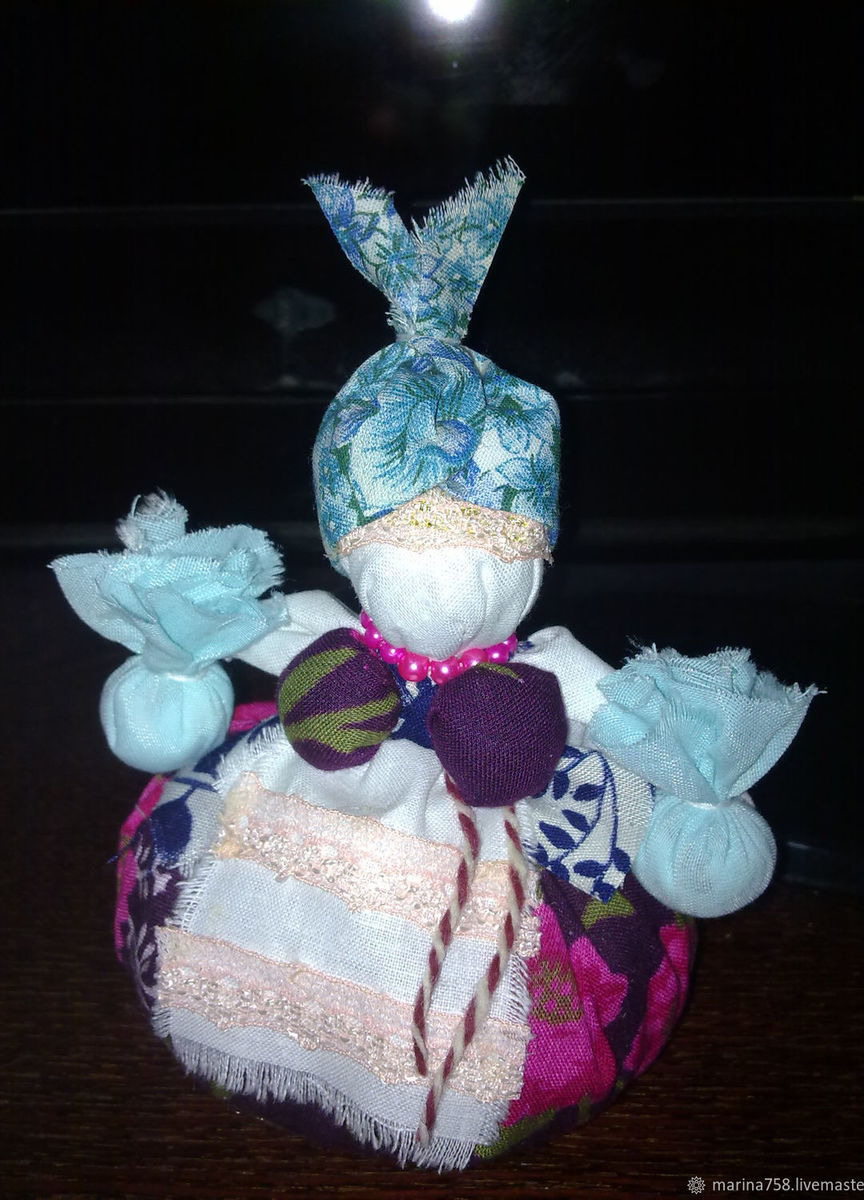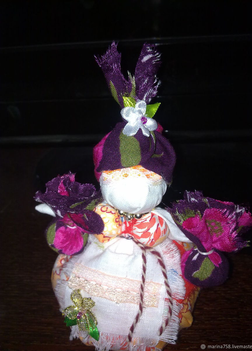 Оберег можно поставить около постели или в комнате где чаще всего находитесь. Подойдет куколка для игр детьми. Для активации наполнителя достаточно просто помять мешочки в руках куколки и вы ощутите чудесный аромат трав.